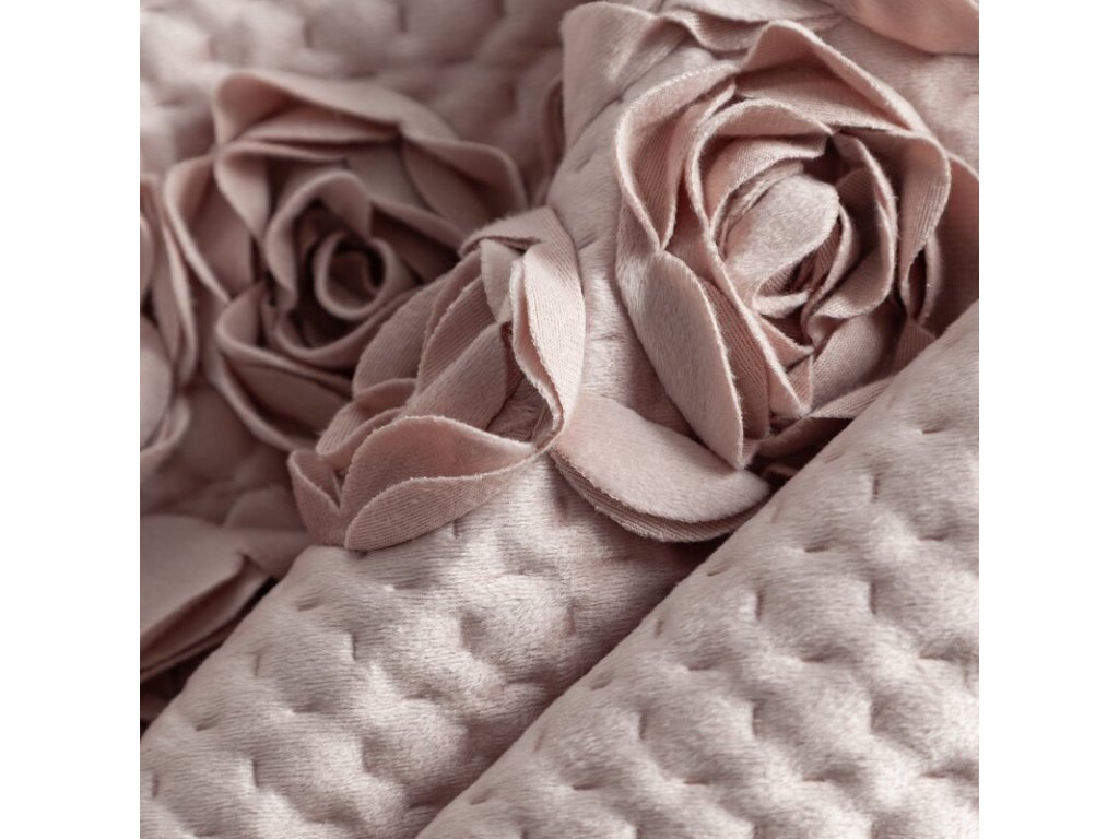 Kölcsönözz hálószobádnak egy csipetnyi puhaságot és eleganciát ezzel a gyönyörű, púderrózsaszín velúr ágytakaróval, 3D-s rózsa applikációval . Ez az árnyalat az egyik legnépszerűbb szín a modern enteriőrökben - romantikusnak, letisztultnak tűnik, és azonnal otthonossá teszi az egész teret.