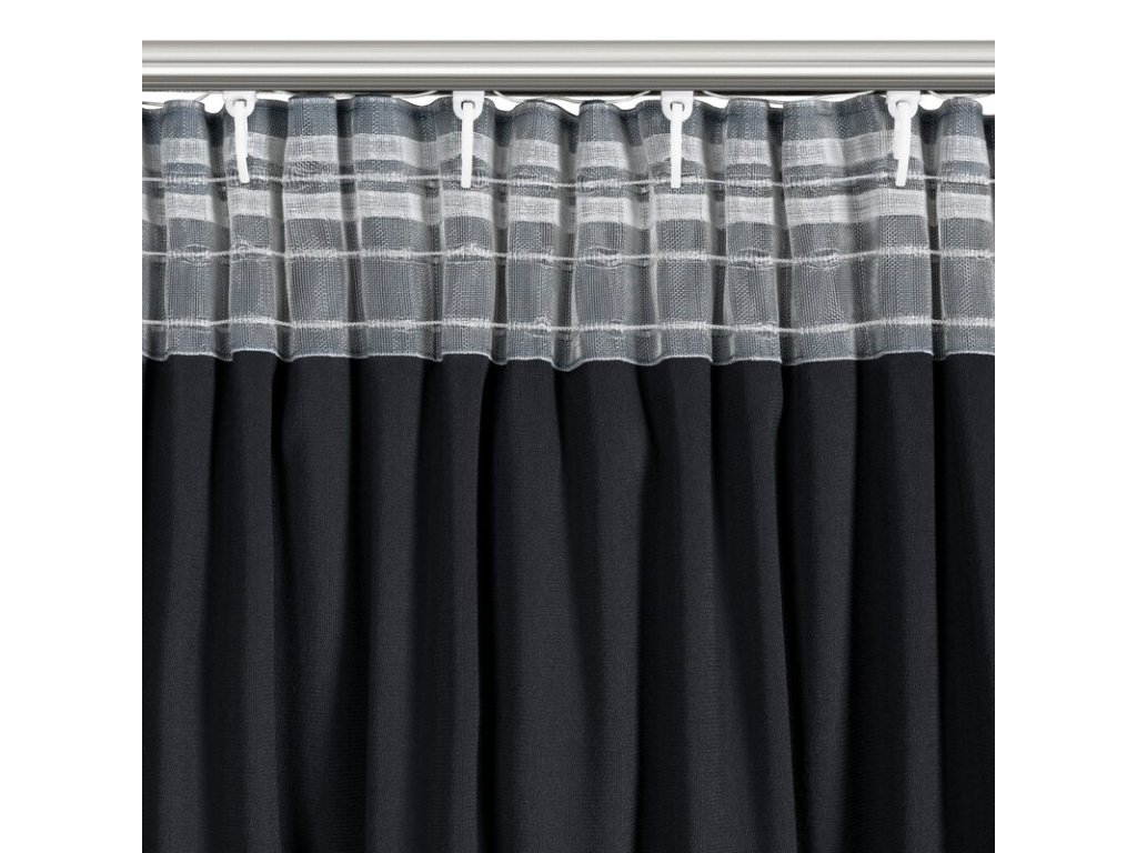 Luxus CARLI szalagfüggöny fodrokkal és csillogó kristálypánttal - fekete