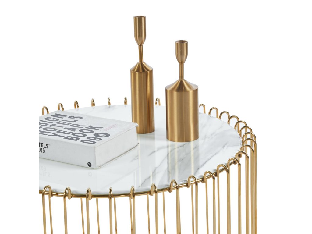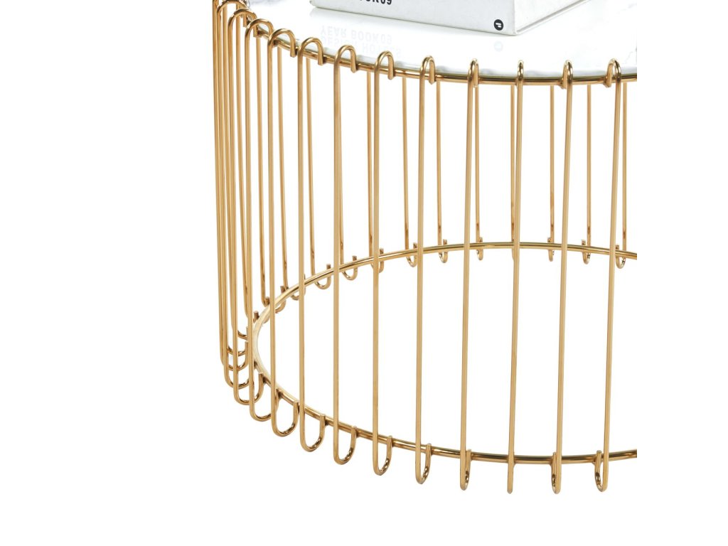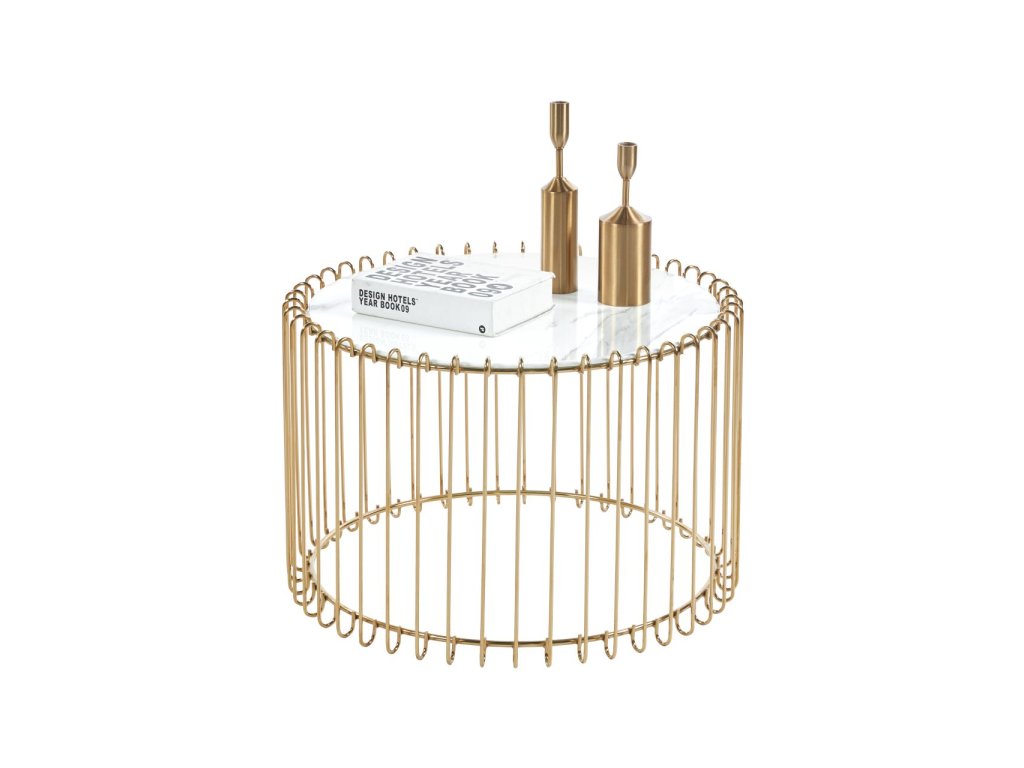 A GOLDEN MARBLE dohányzóasztal tömör arany fém talpra épül, dekoratív "drótvázas" szerkezettel, amely könnyű, elegáns és egyben stabil is. A teteje kiváló minőségű üvegből készült, fehér márvány mintával, amely rendkívül sokoldalú, luxus és könnyen karbantartható.