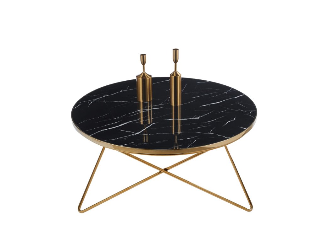 Luxus dohányzóasztal Noir Márvány Arany 80 cm