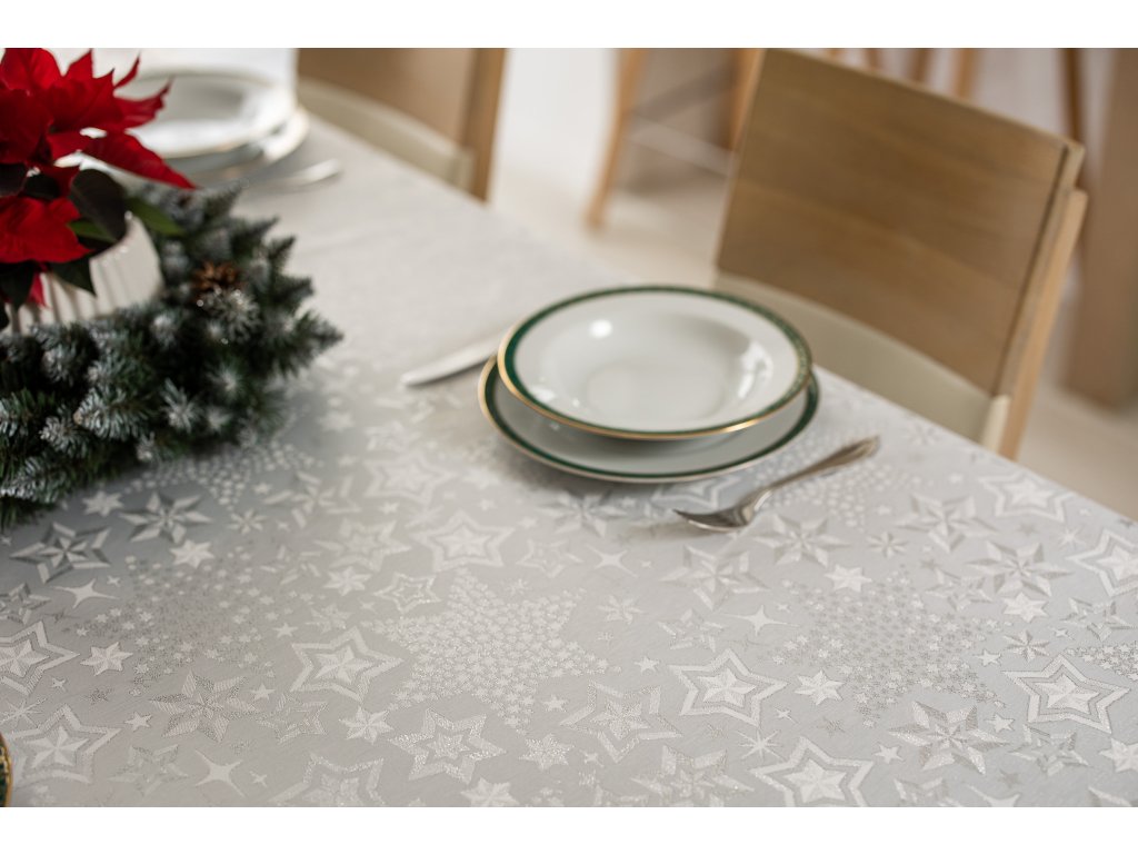 Luxus karácsonyi asztalterítő csillagokkal - ezüst SW30