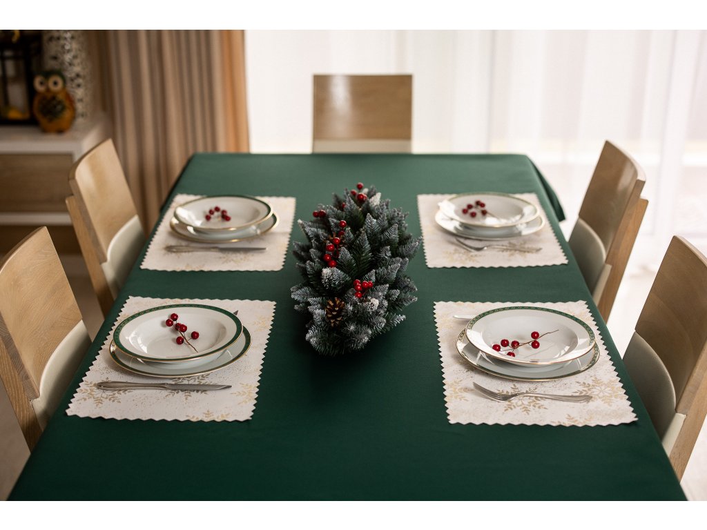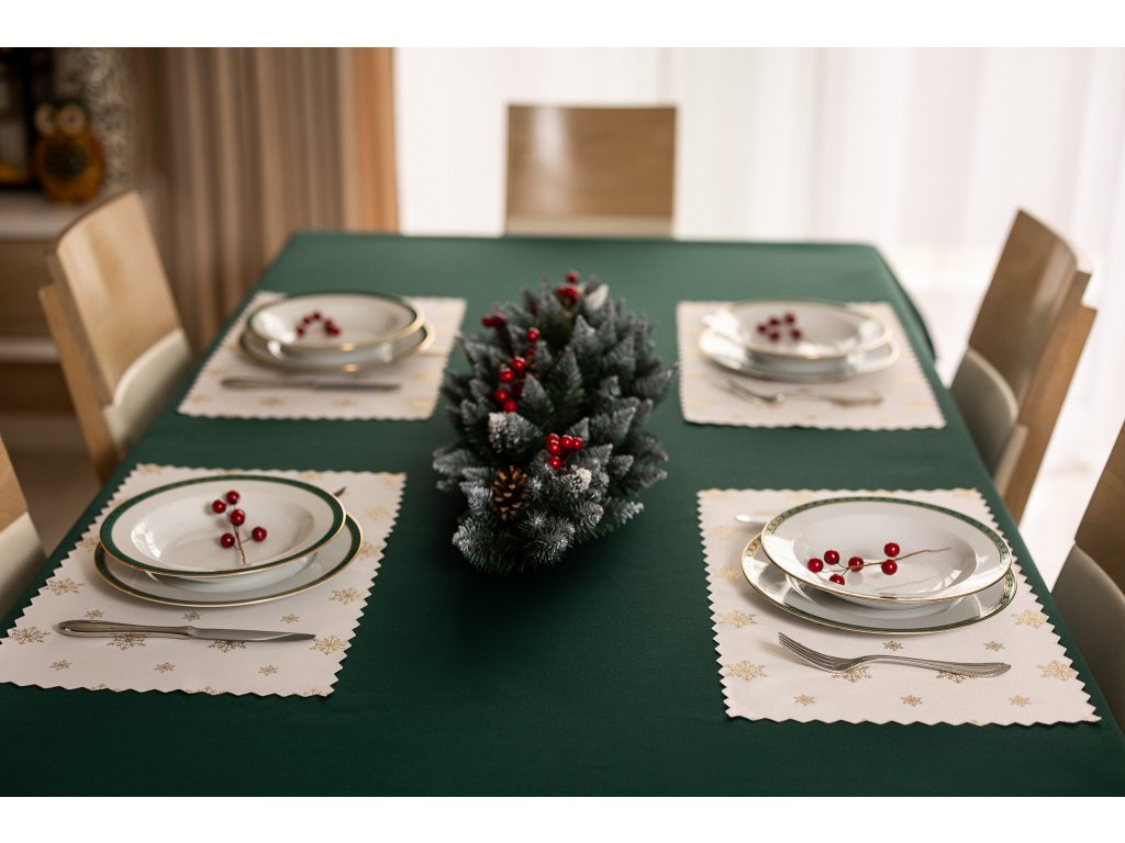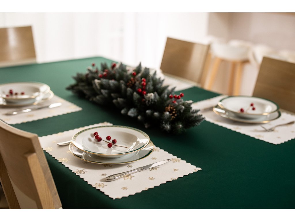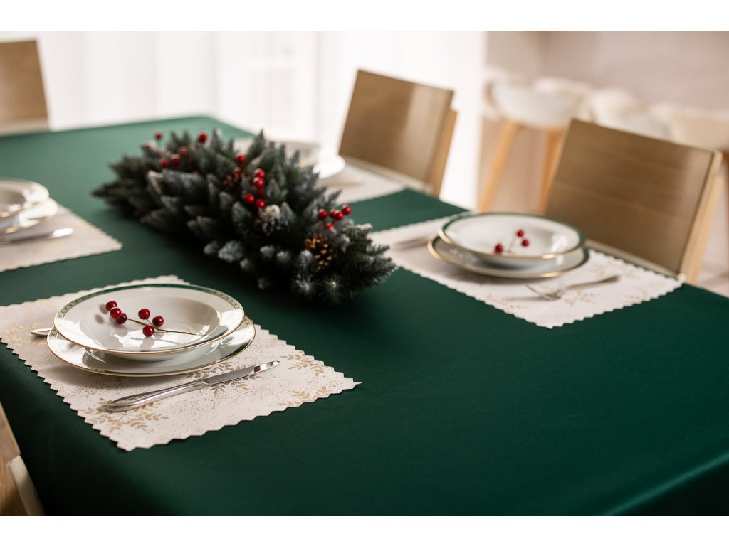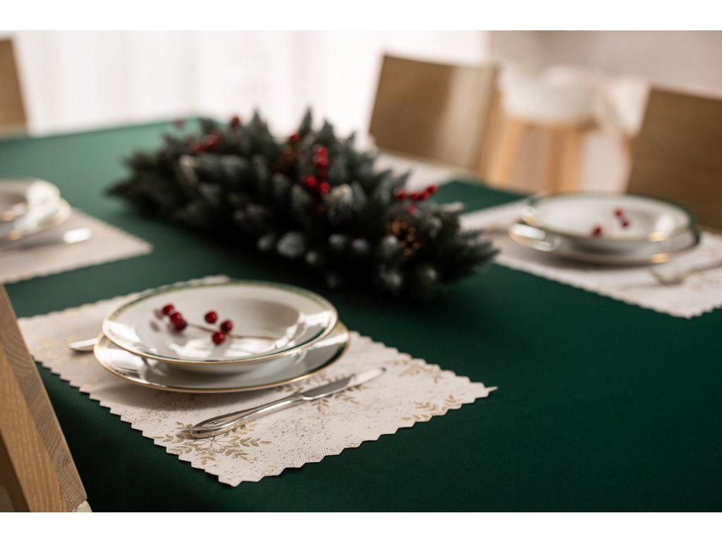 Az arany színű fényűző karácsonyi terítő az esztétikai funkciók mellett praktikus funkciókkal is rendelkezik. Megvédi az asztallapot, ugyanakkor elegáns megjelenésű.