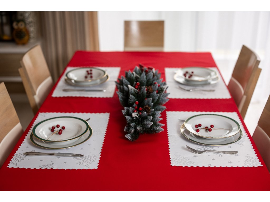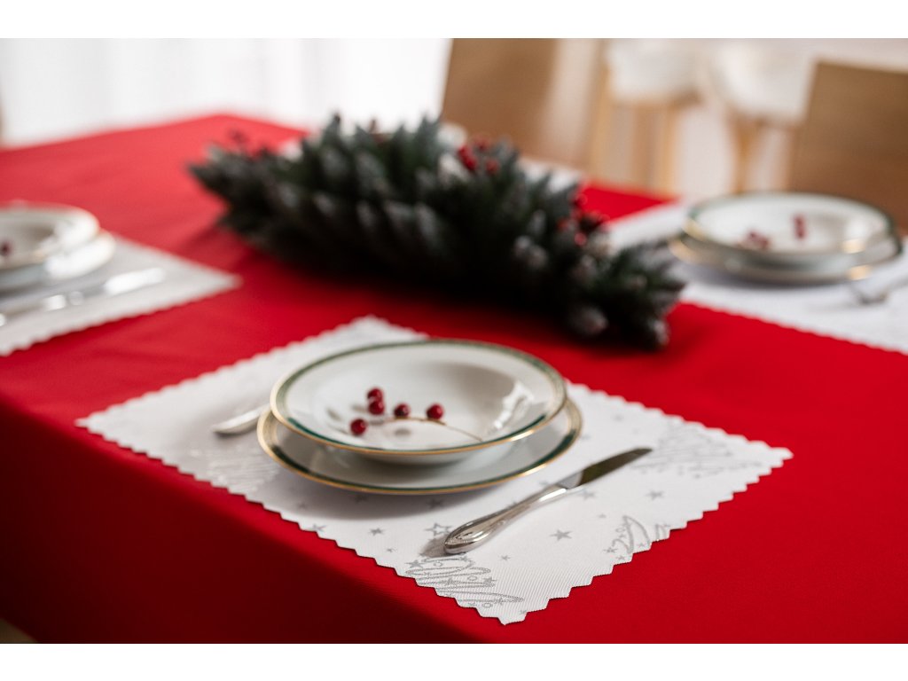Az ezüst színű fényűző karácsonyi terítő az esztétikai funkciók mellett praktikus funkciókkal is rendelkezik. Megvédi az asztallapot, ugyanakkor elegáns megjelenésű.