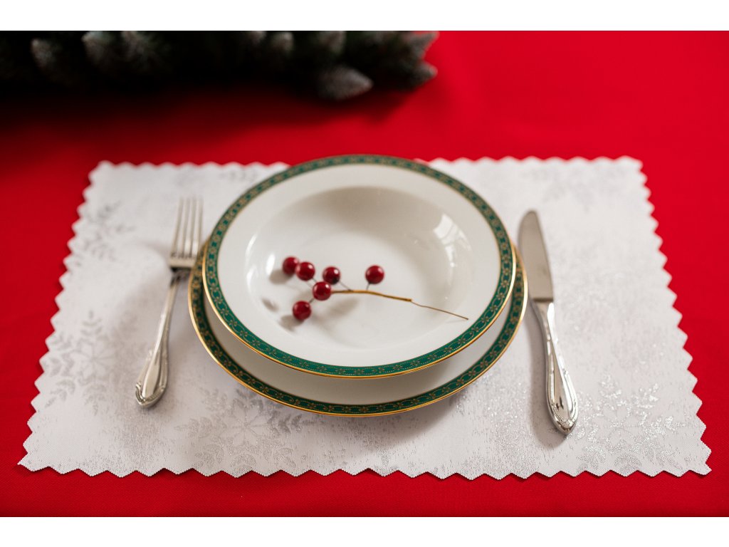 Luxus karácsonyi terítő hópelyhekkel ezüst SW15 - 2 darabos készlet