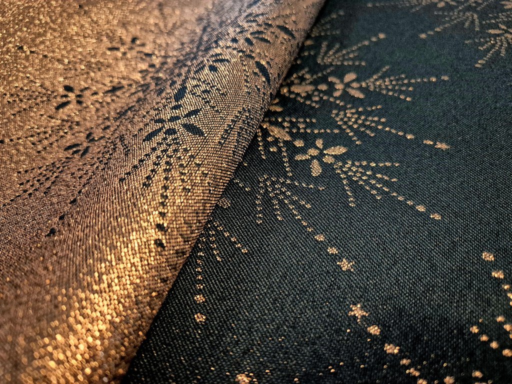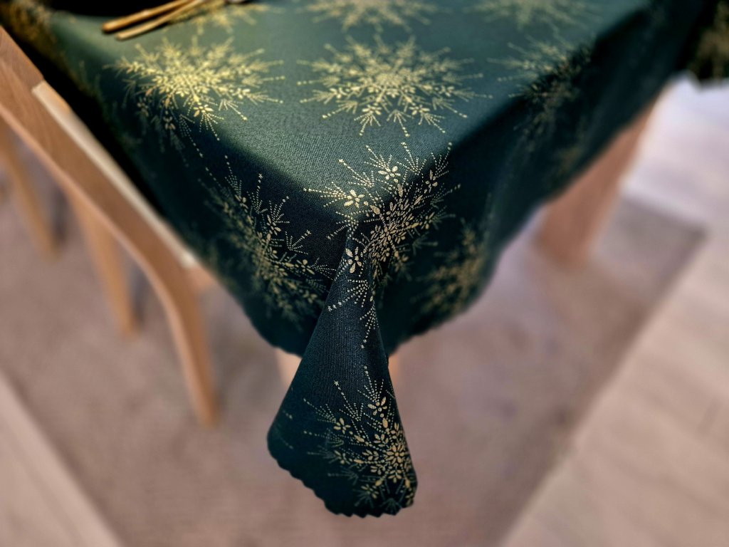 Luxus karácsonyi terítő hópelyhekkel - zöld-arany SW28