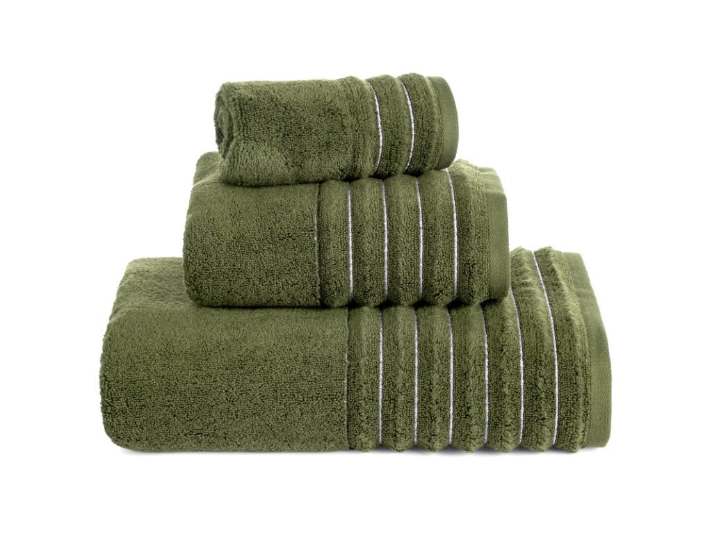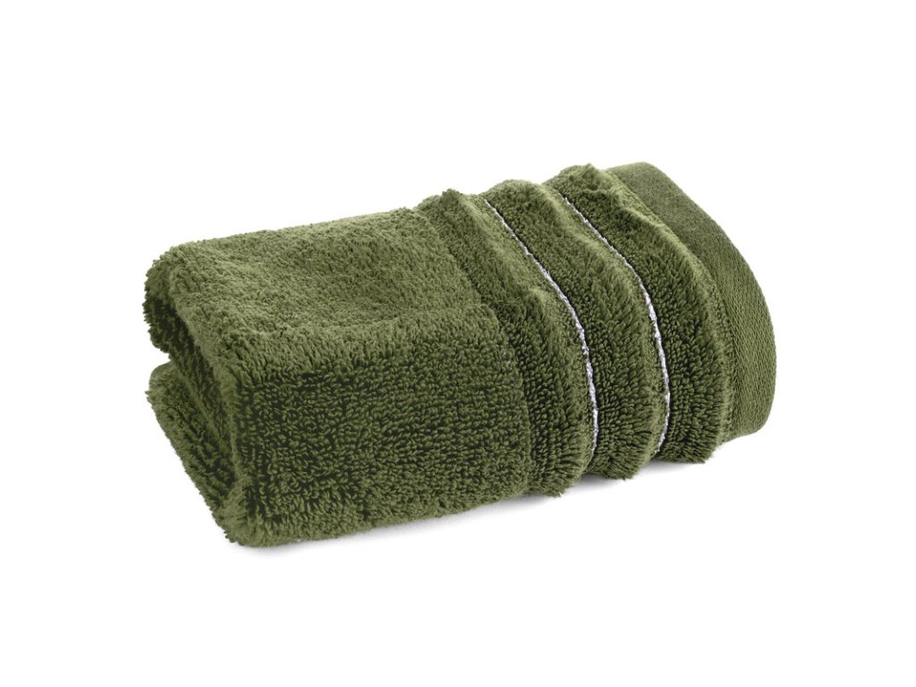 Luxus LUNARI törölköző, fényes zöld cérnával díszítve