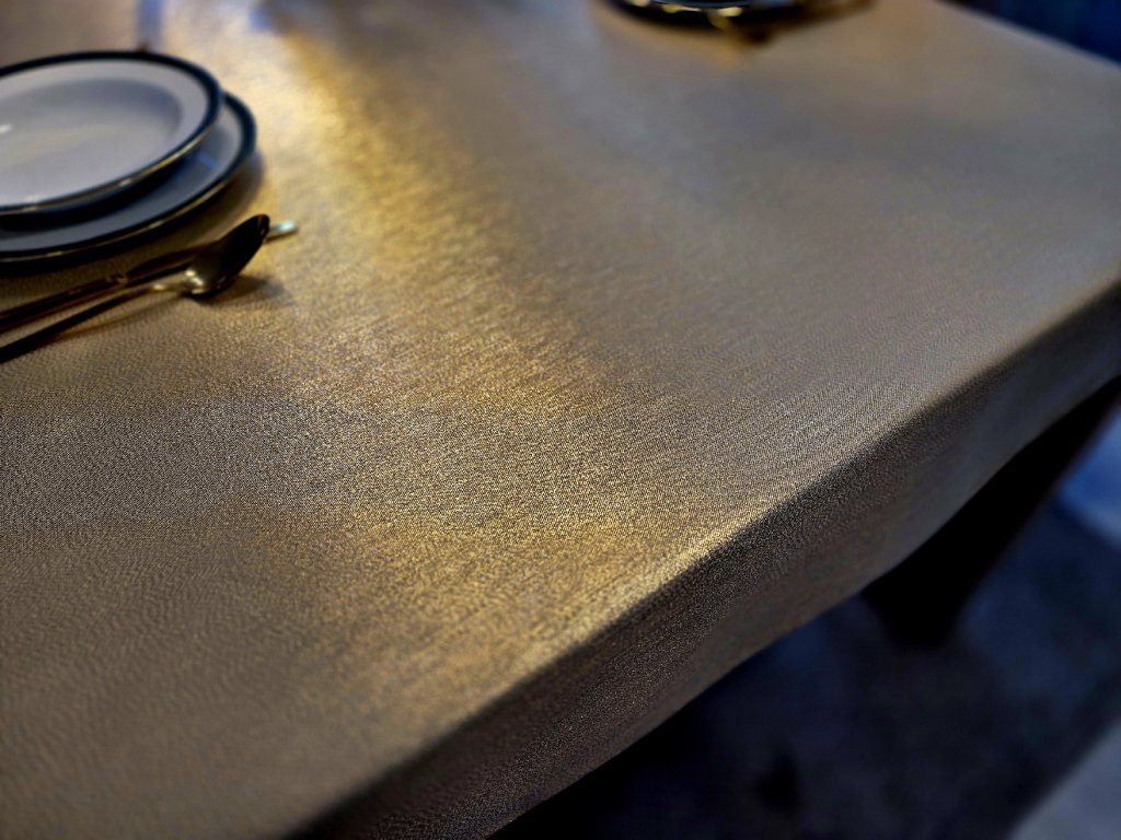 A szövet ezenkívül foltálló felülettel (teflon) van gazdagítva. Ez a fajta felületkezelés nem engedi, hogy a folyadékok beszívódjanak a szövet rostjaiba, így megóvják a terítőt a foltoktól.