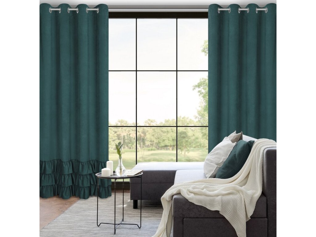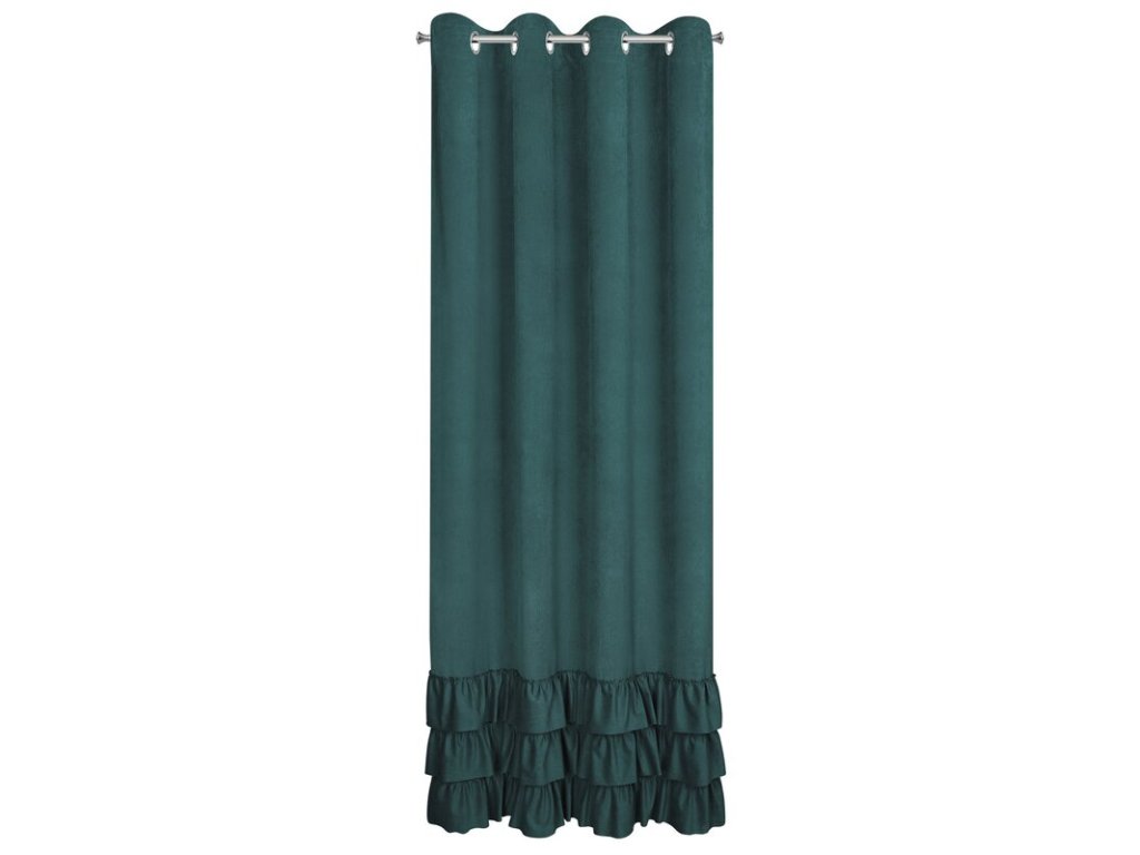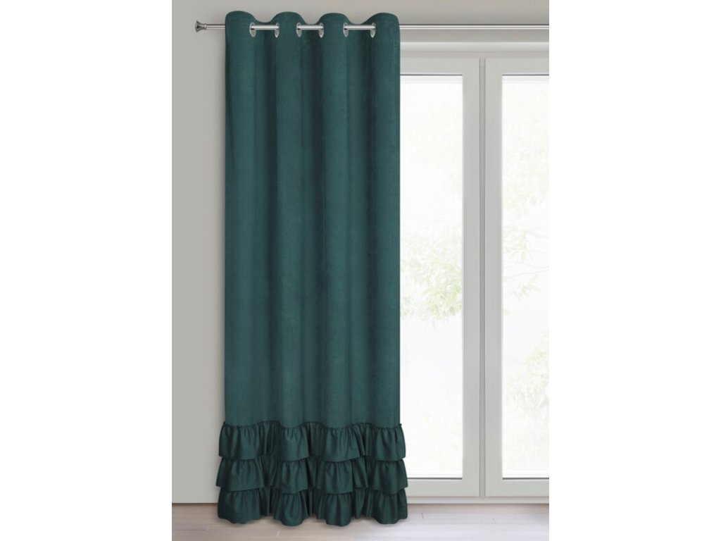 MEGI bársony függöny sötétzöld fodros díszítő kerekekkel