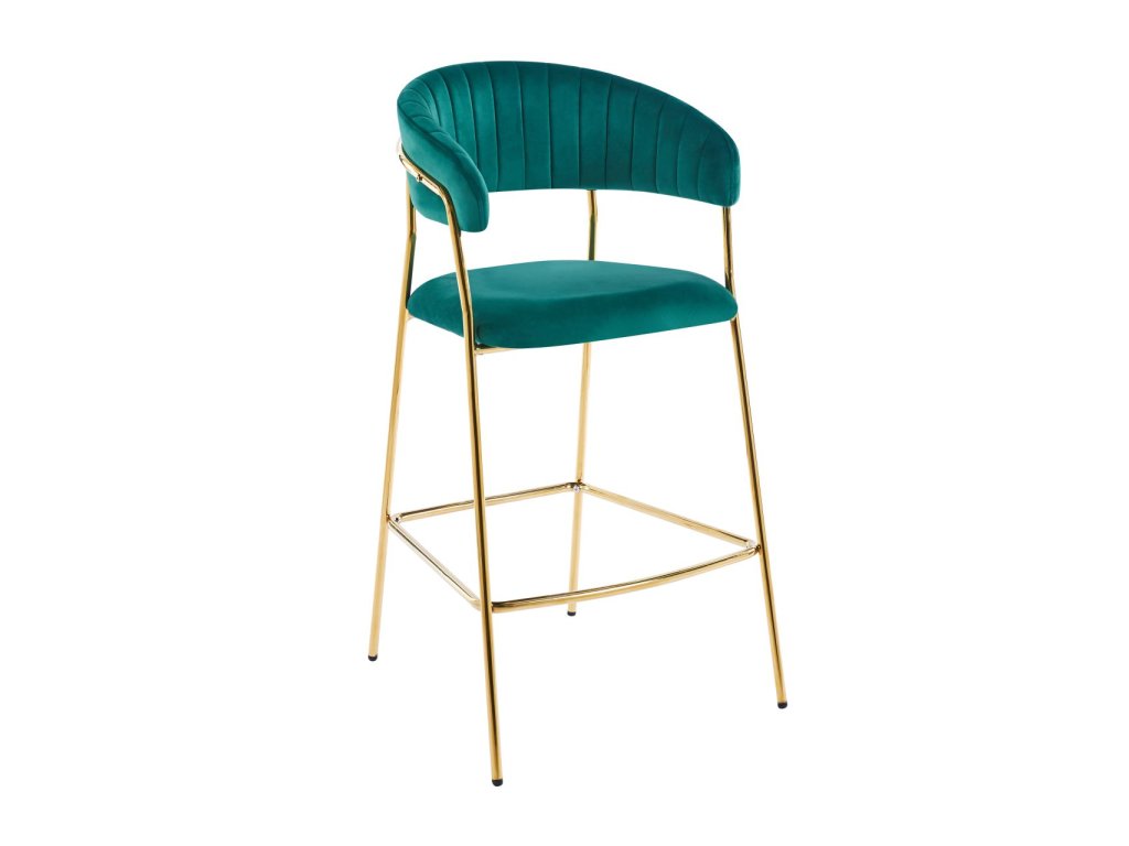 Az ülőfelület és a háttámla puha bársonnyal (velúrral) kárpitozottak, ami kellemes tapintású és vizuálisan rendkívül vonzó. A habszivacs töltet kényelmes ülést biztosít, így a szék ideális mindennapi használatra és hosszabb esti beszélgetésekre a bárpultnál vagy a konyhaszigeten.