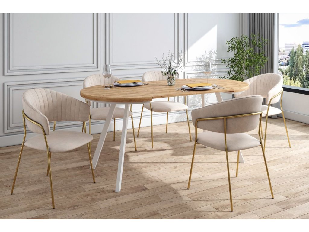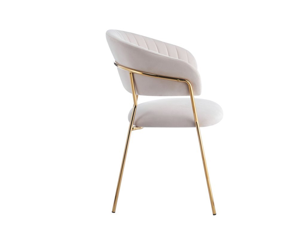 Bemutatjuk a Glamour széket – az elegancia, a kényelem és a modern dizájn tökéletes kombinációját. Kifinomult megjelenését a puha bézs velúr és az arany fém lábak kombinációja teszi különlegessé, melyek harmonikus glamour hatást keltenek, és egy csipetnyi luxust visznek bármilyen enteriőrbe.