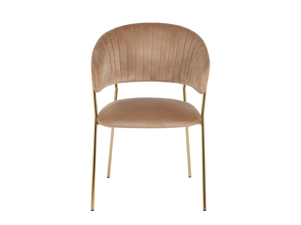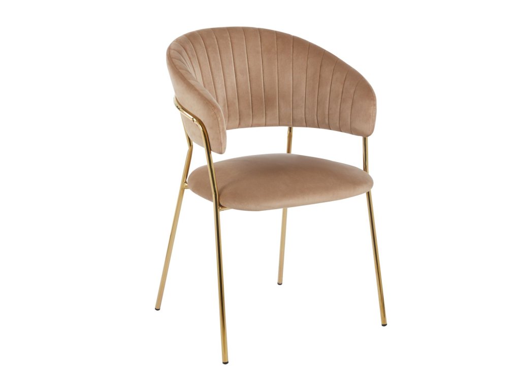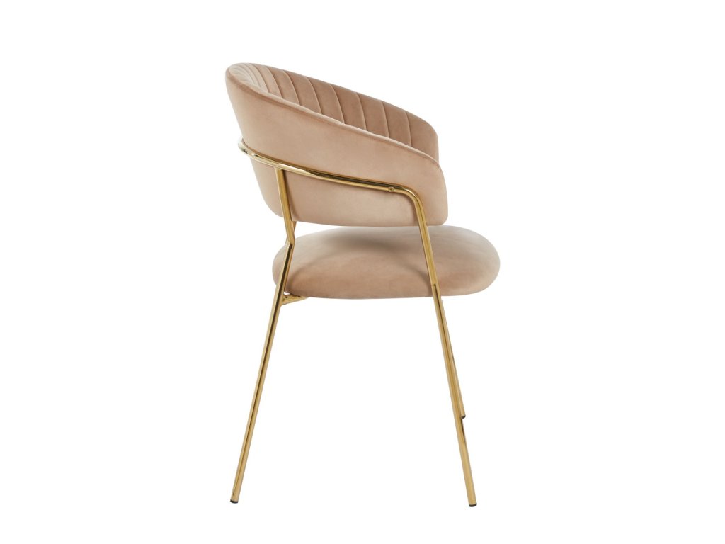 A cappuccino színű Glamour szék meleg, elegáns és modern megjelenést kölcsönöz. Puha barna-bézs velúrja harmonikus és luxus hatást kelt, míg az arany lábak kiemelik elbűvölő jellegét.