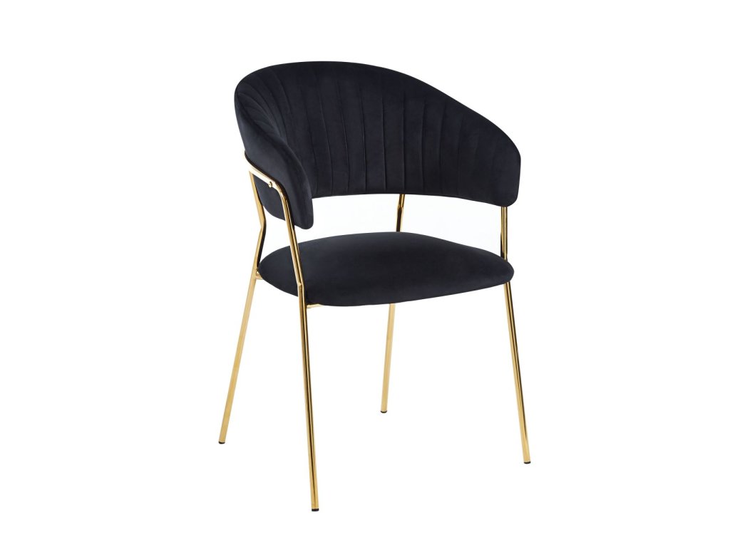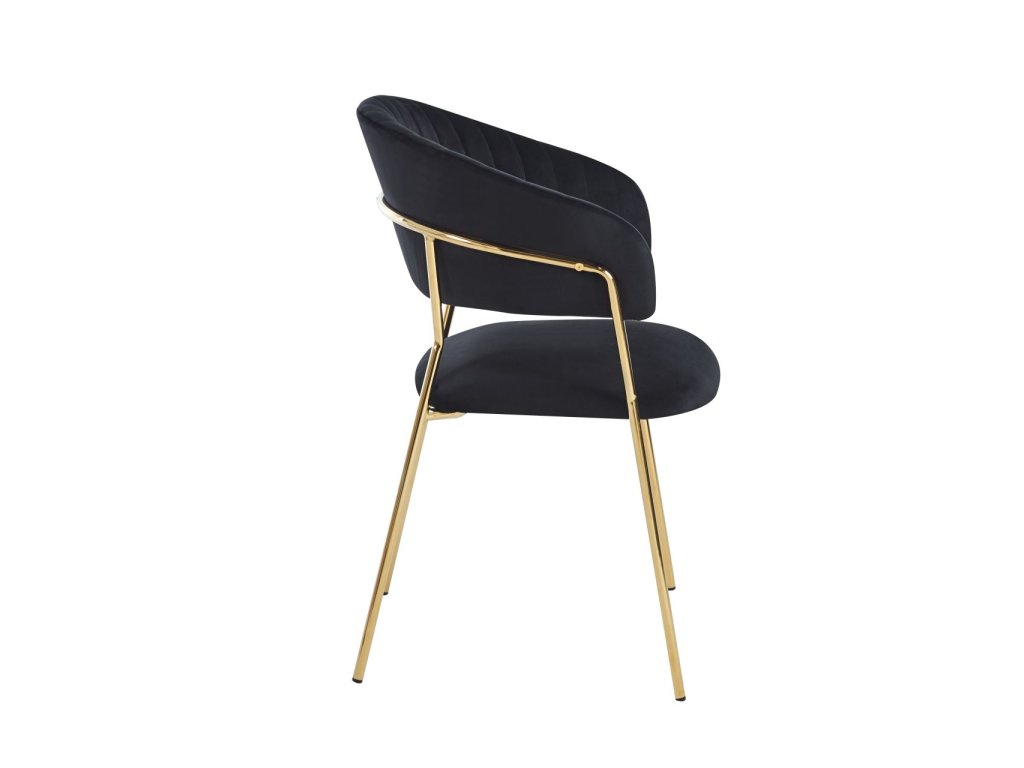 A fekete Glamour szék a luxus, az elegancia és a modern minimalizmus szimbóluma. A mélyfekete velúr és az arany fém lábak kombinációja ikonikus glamour hatást kelt, amely azonnal magára vonzza a figyelmet és egy csipetnyi exkluzivitást kölcsönöz a térnek.