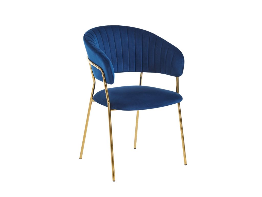 A sötétkék Glamour szék luxus, jellegzetes és divatos megjelenésű. A mélykék árnyalat az arany lábakkal kombinálva exkluzív, arisztokratikus megjelenést kölcsönöz, amely tökéletesen illik elegáns és modern terekbe.