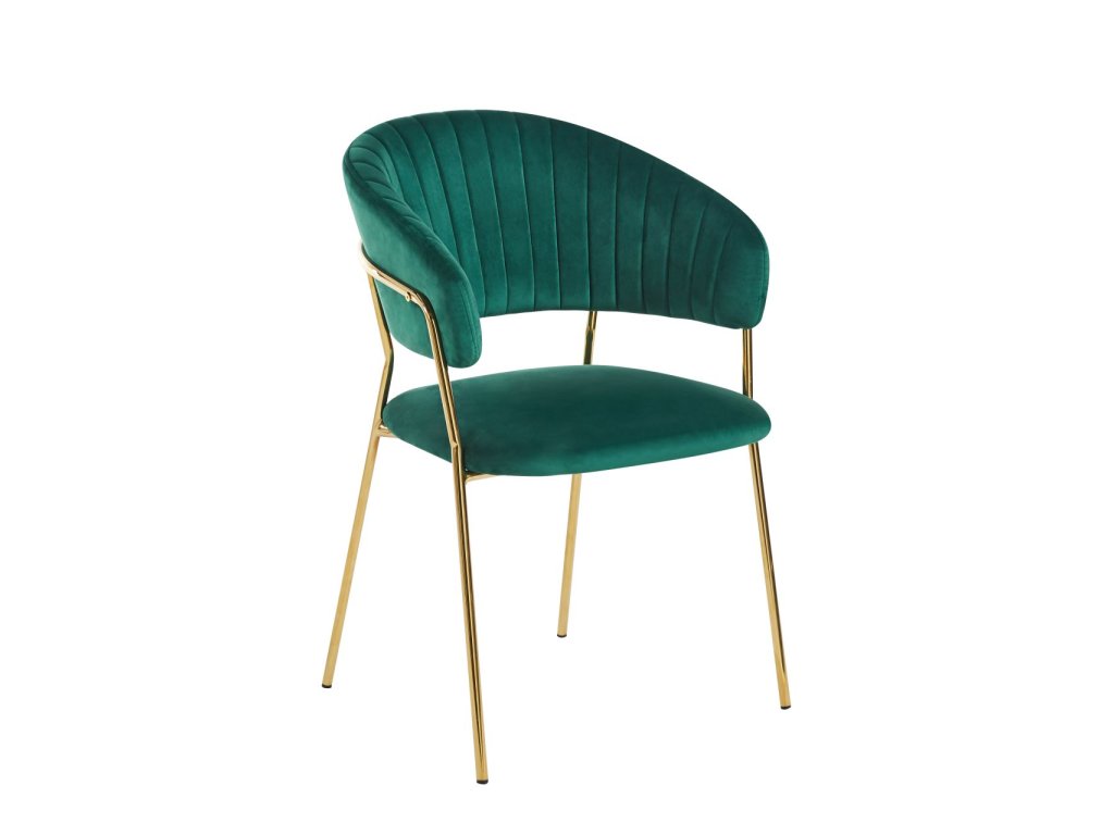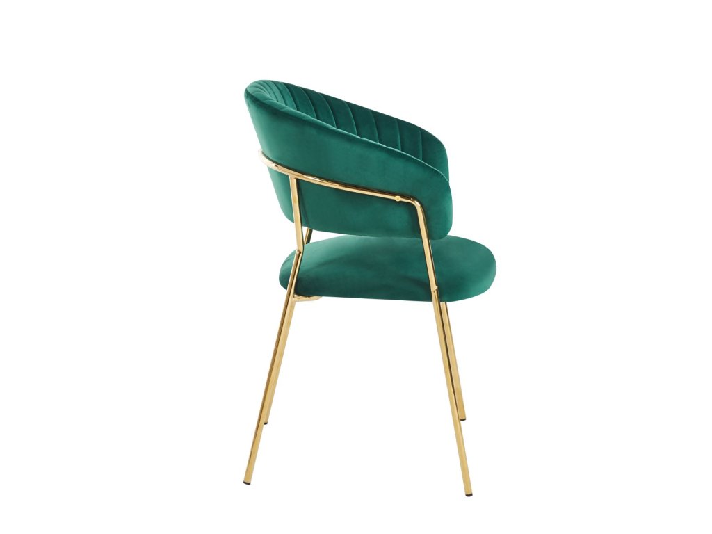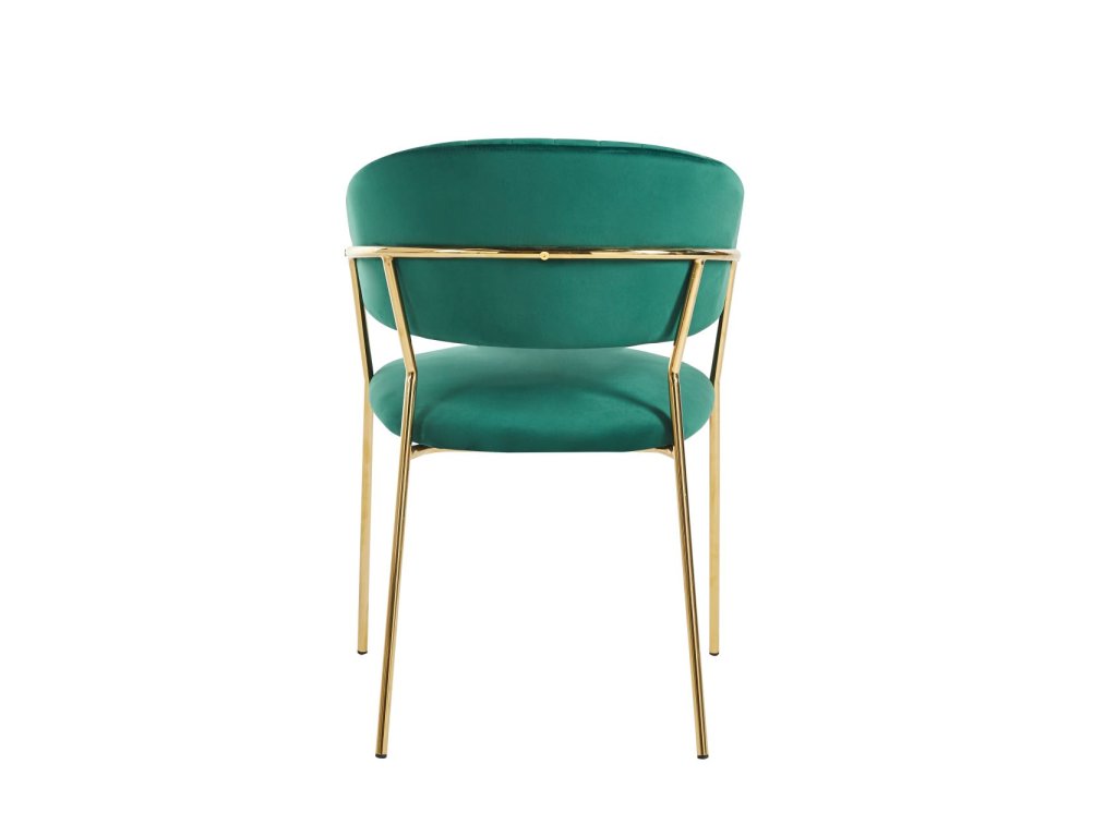 A Glamour szék sötétzöld változata harmóniát, eleganciát és modern luxust visz a belső térbe. A smaragdzöld velúr stílusos és időtlen hatást kelt, miközben az arany lábakkal kombinálva gyönyörű, elbűvölő kontrasztot alkot.