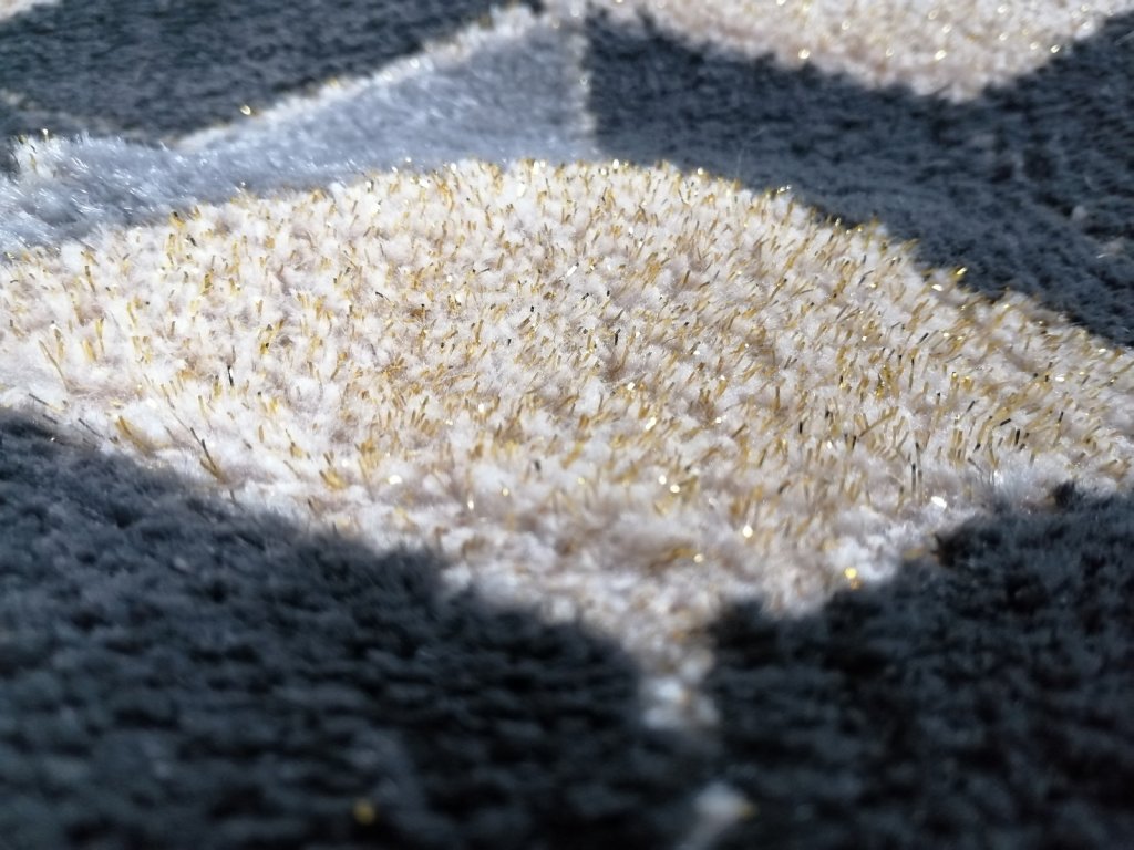 A FROST kollekció szőnyegei polipropilén szálakból készült, 10 mm-es szálmagasságú, gyönyörű színekben pompázó, aranyszínű bolyhos díszítésű szőnyegek.