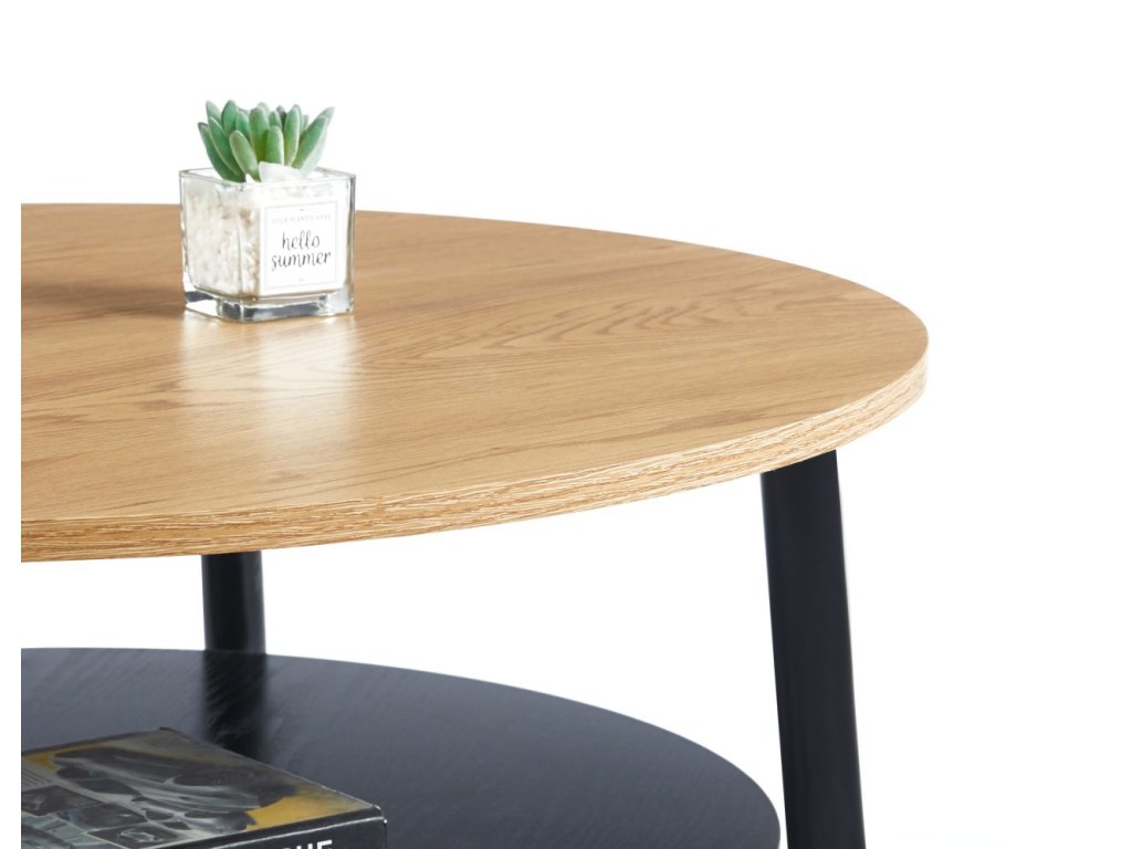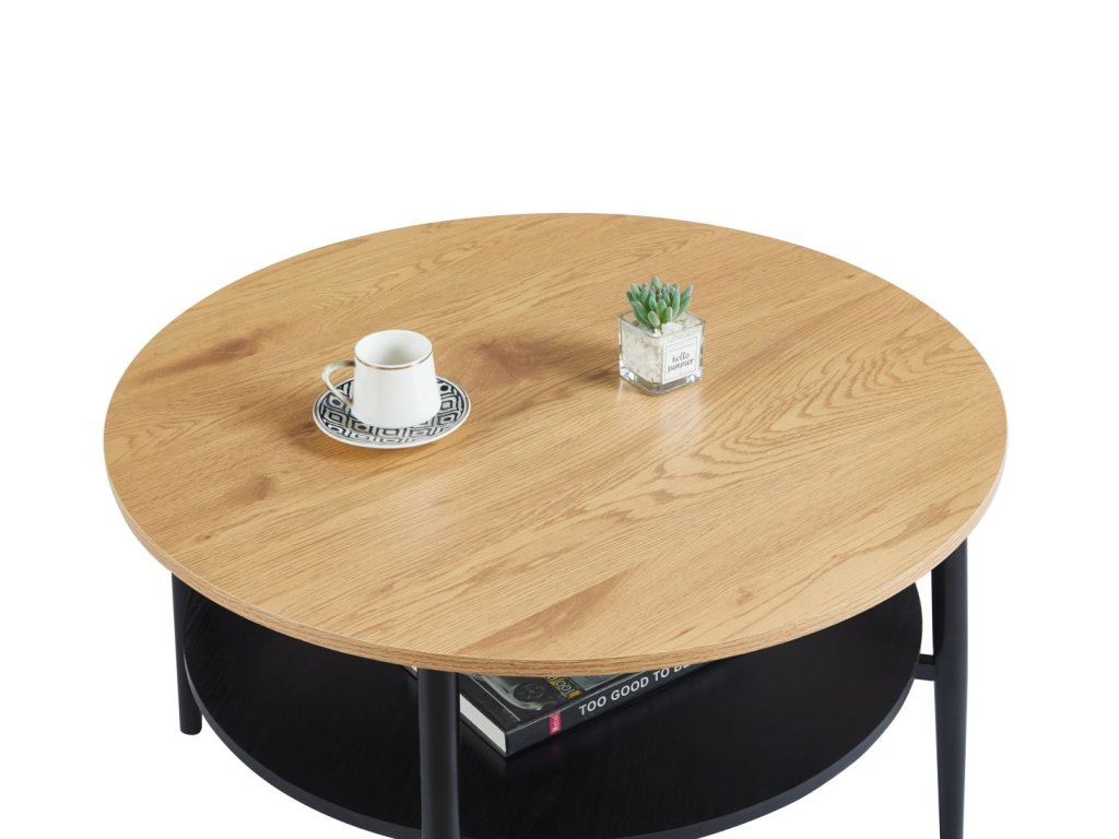 A dupla polcnak köszönhetően az asztal rengeteg helyet kínál nemcsak kávénak vagy dekorációnak, hanem könyveknek, magazinoknak vagy apróságoknak is, amelyeket kéznél szeretne tartani. A stabil, matt fekete fém talp szilárdságot és tartósságot biztosít a mindennapi használat során.