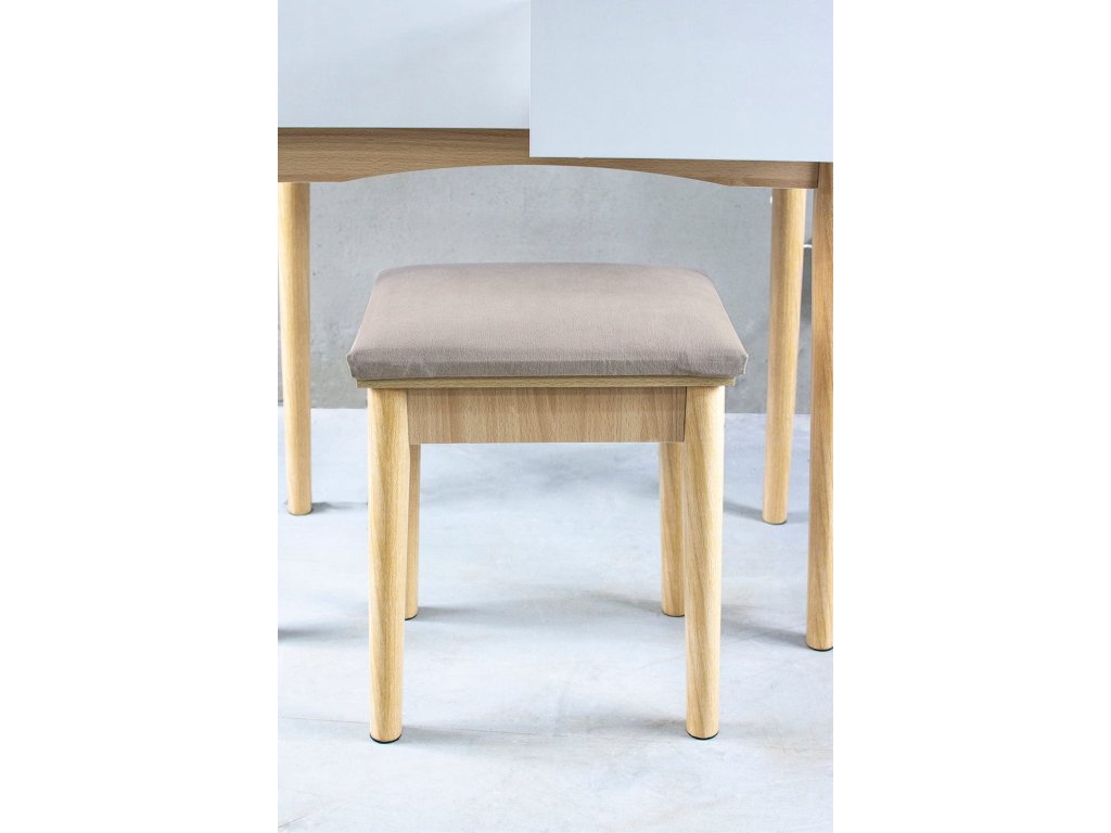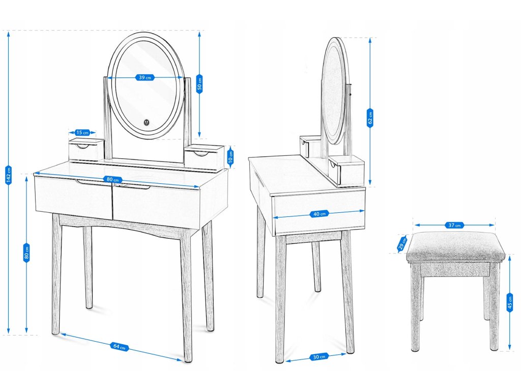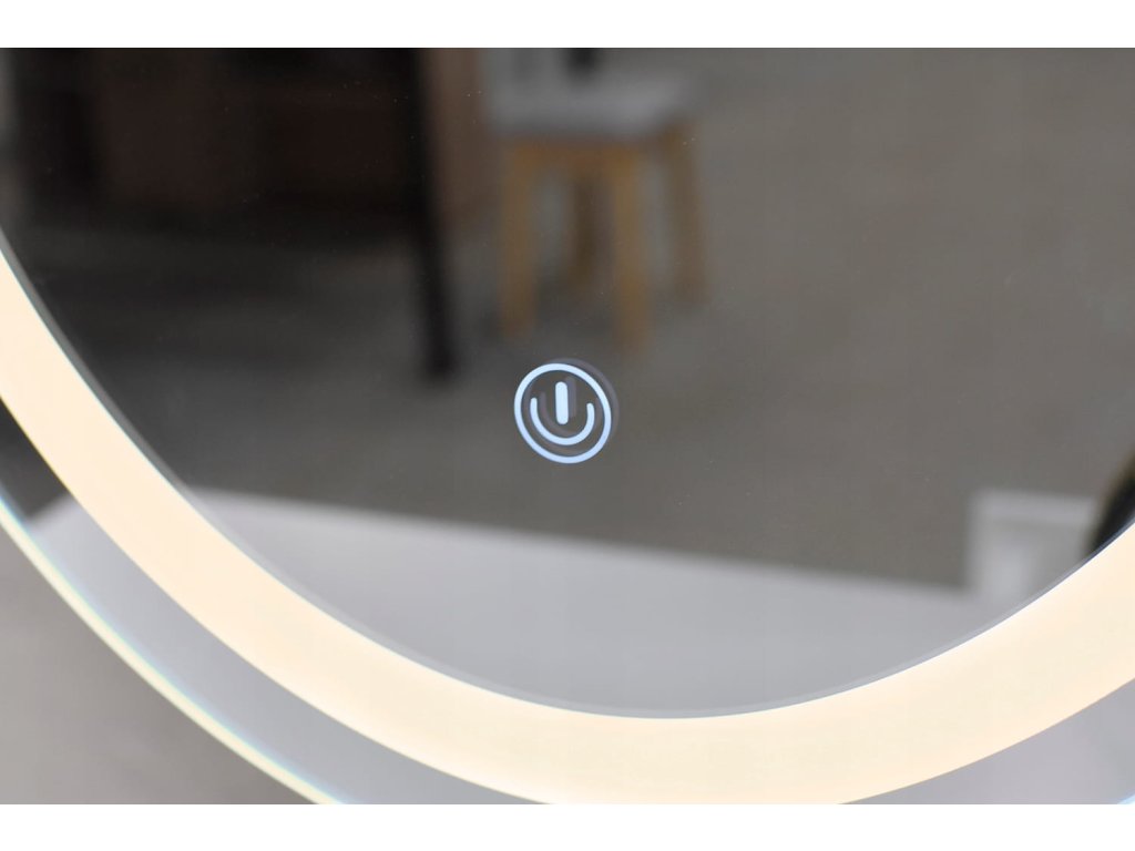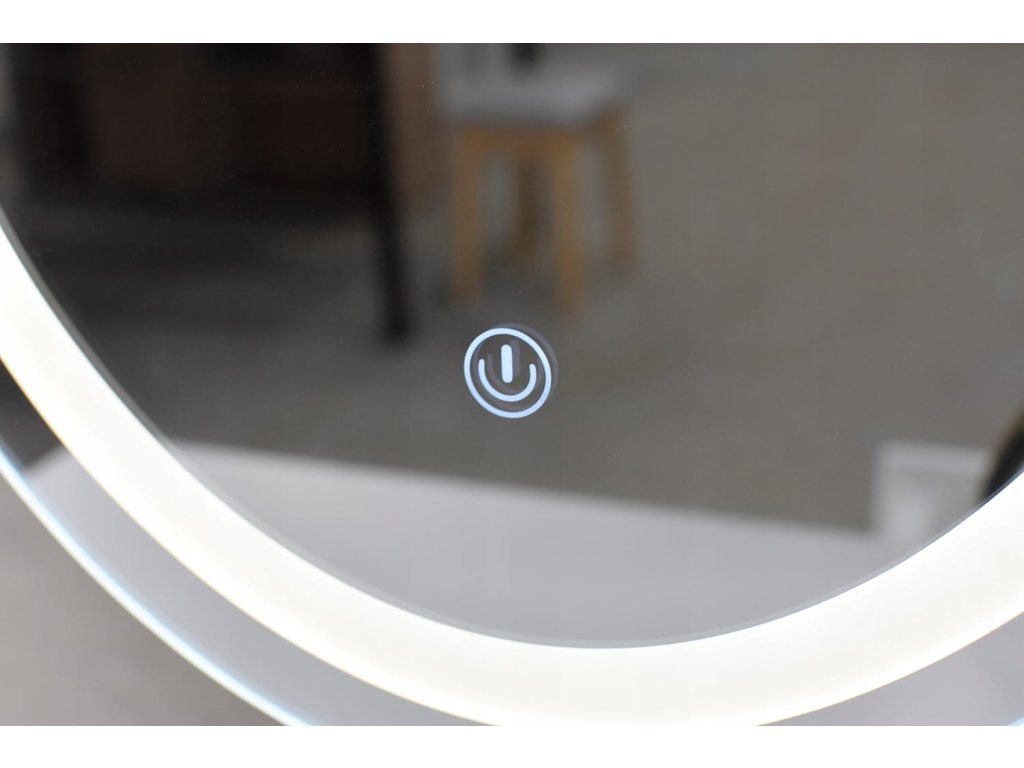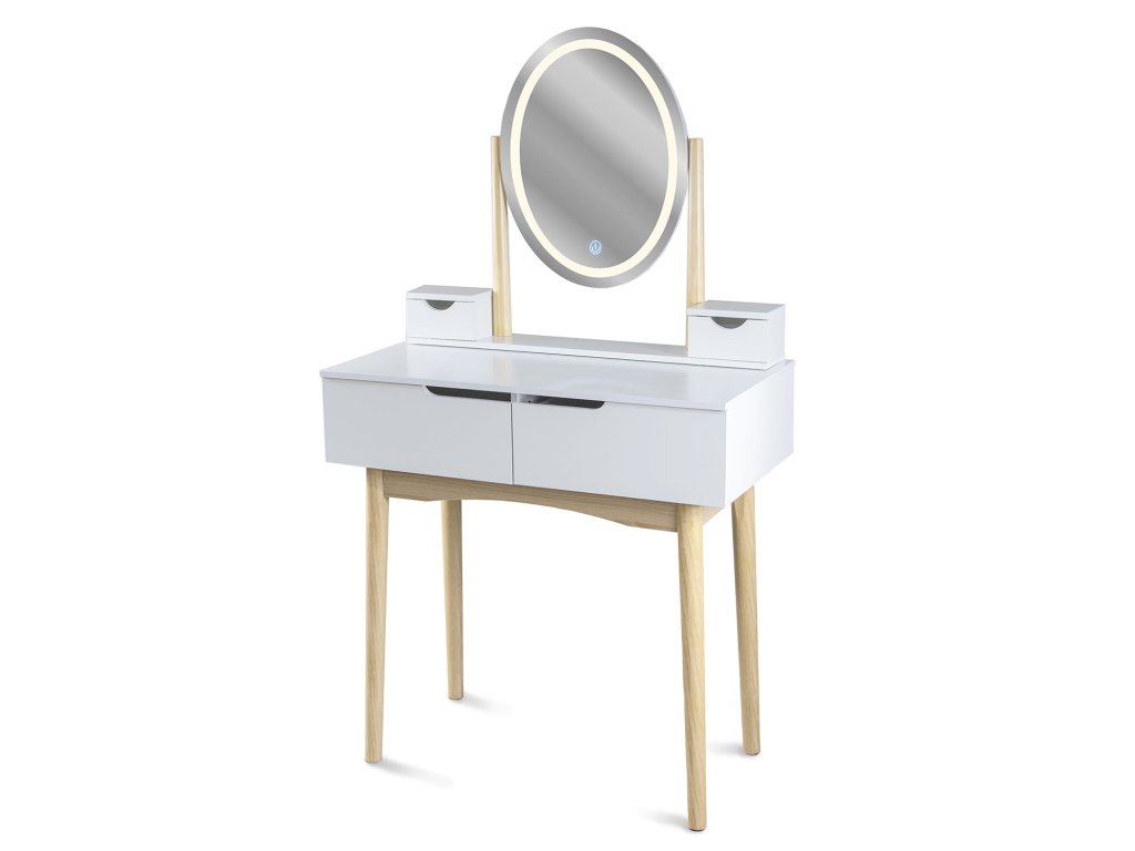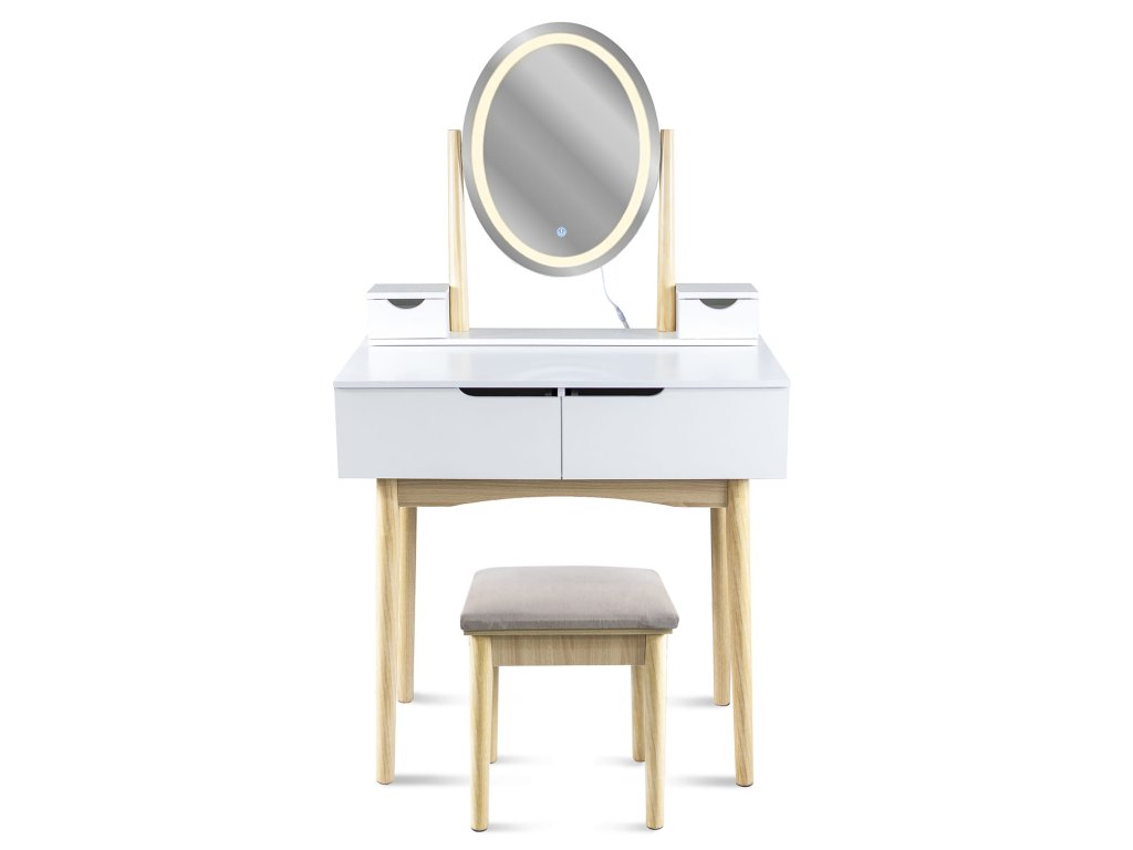 Öltözőasztal ovális LED-es tükörrel és bézs színű székkel