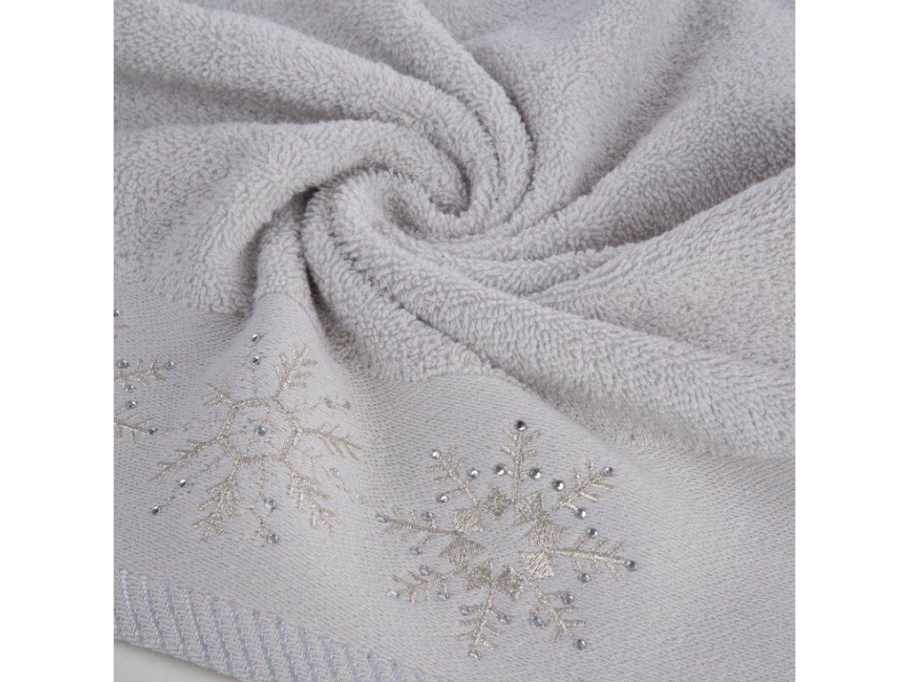 A természetes pamutból készült, hópehely hímzéssel készült törölköző elhozza a karácsony varázsát fürdőszobájába.