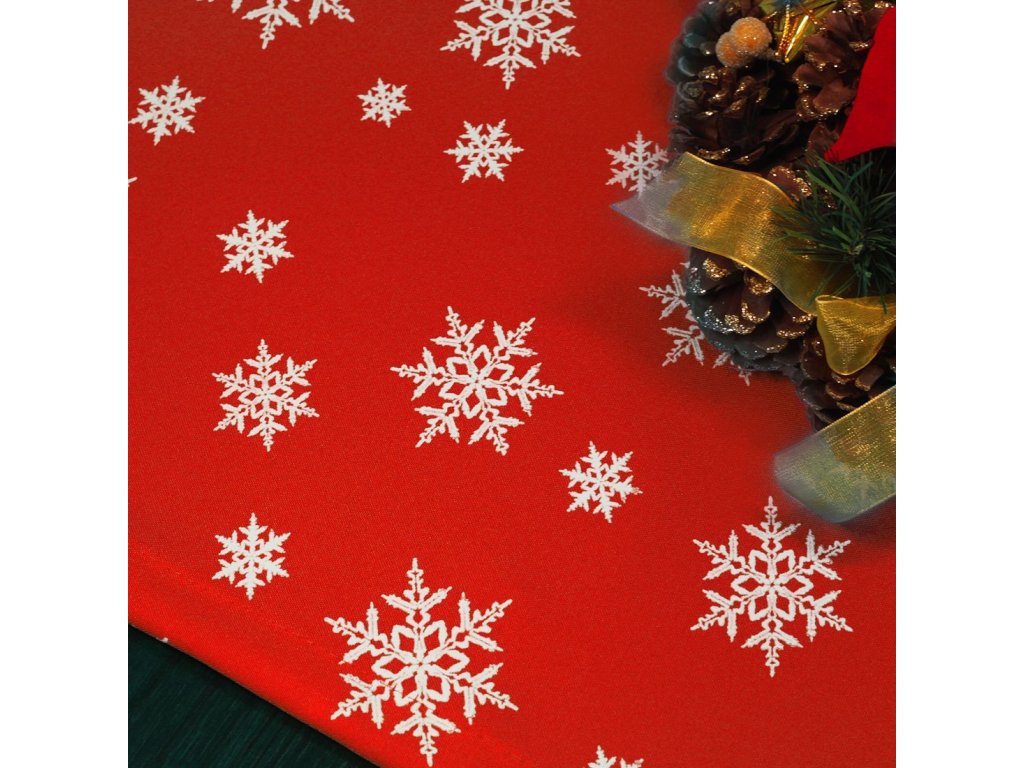 Piros karácsonyi asztali futó hópelyhekkel