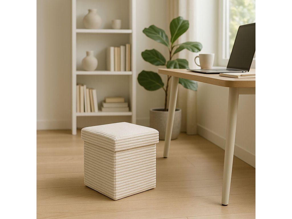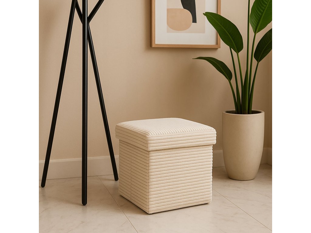 Plüss Összecsukható Szék Tárolóval – Bézs (30 × 30 × 30 cm)