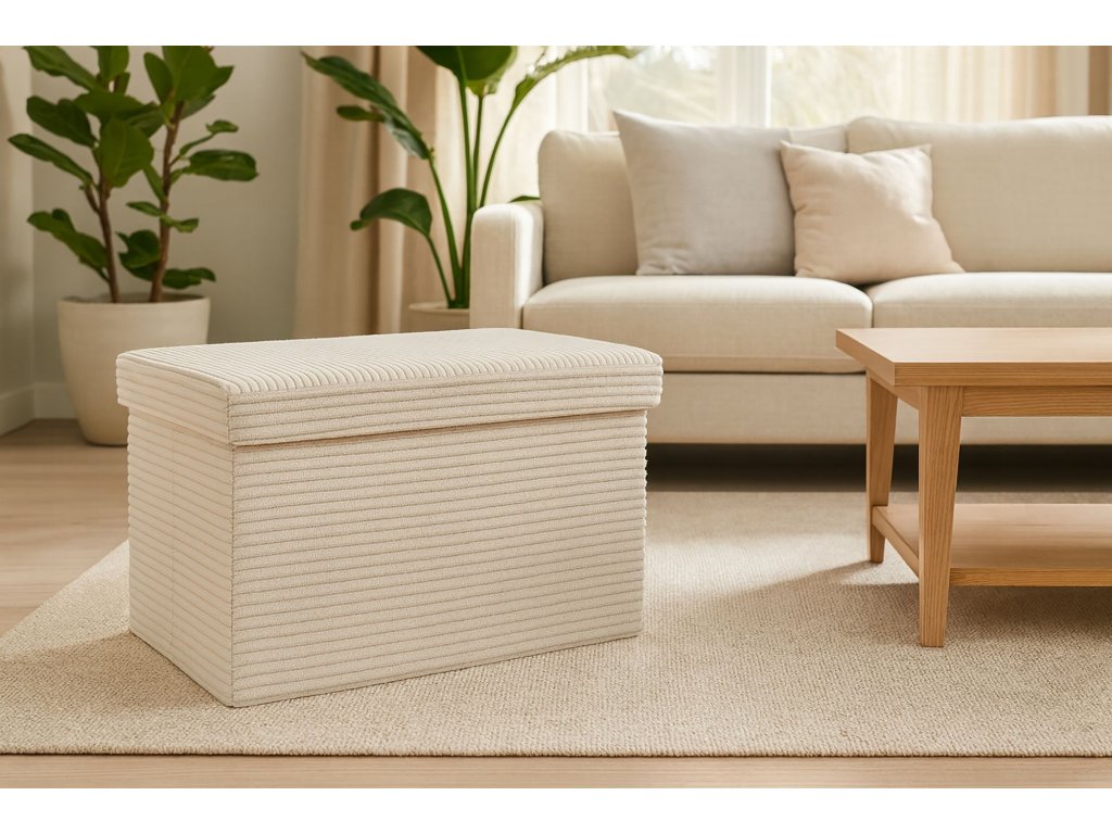 Plüss Összecsukható Szék Tárolóval – Bézs (60 × 30 × 30 cm)