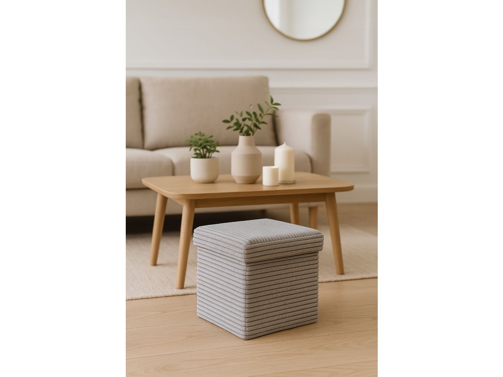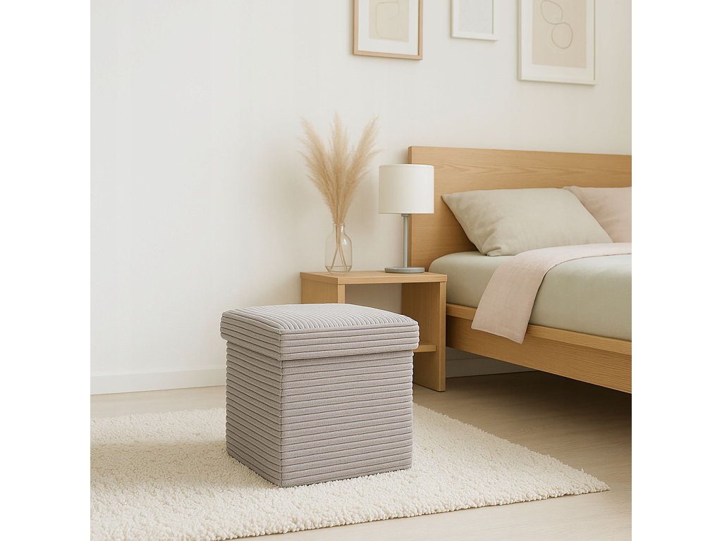 ✔ Modern megjelenés - a bordázott felület stílusos külsőt kölcsönöz a zsámolynak, és könnyen kombinálható más bútorokkal.