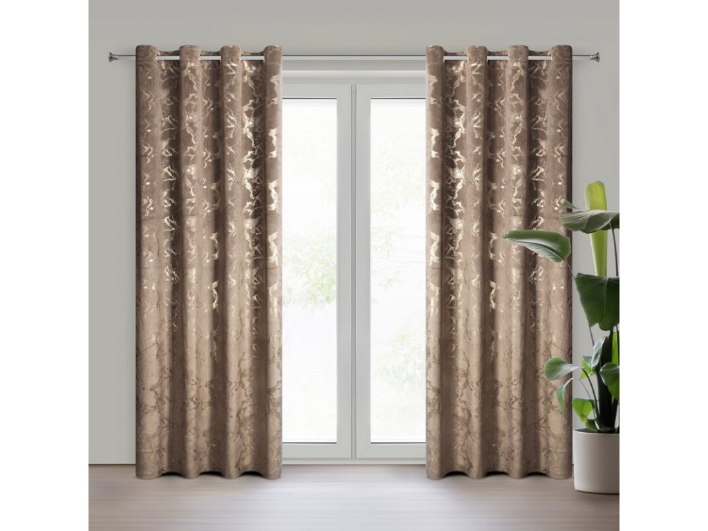 RAJA bársonyfüggöny díszes görgőkön 140 x 250 cm barna színben