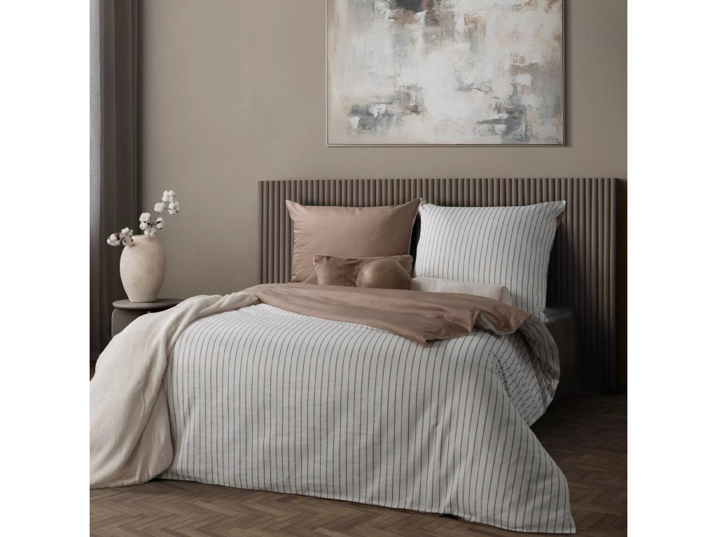 A 100% pamutszaténból készült RAJA ágynemű a kellemes kényelmet modern, letisztult megjelenéssel ötvözi. Az elülső oldalát digitális nyomtatási eljárással készült finom csíkos minta díszíti, amely könnyednek és elegánsnak tűnik. A másik oldala sima és masszív , aminek köszönhetően az ágyadat a hangulatod szerint díszítheted - hol kifejezőbben, hol minimalista módon.