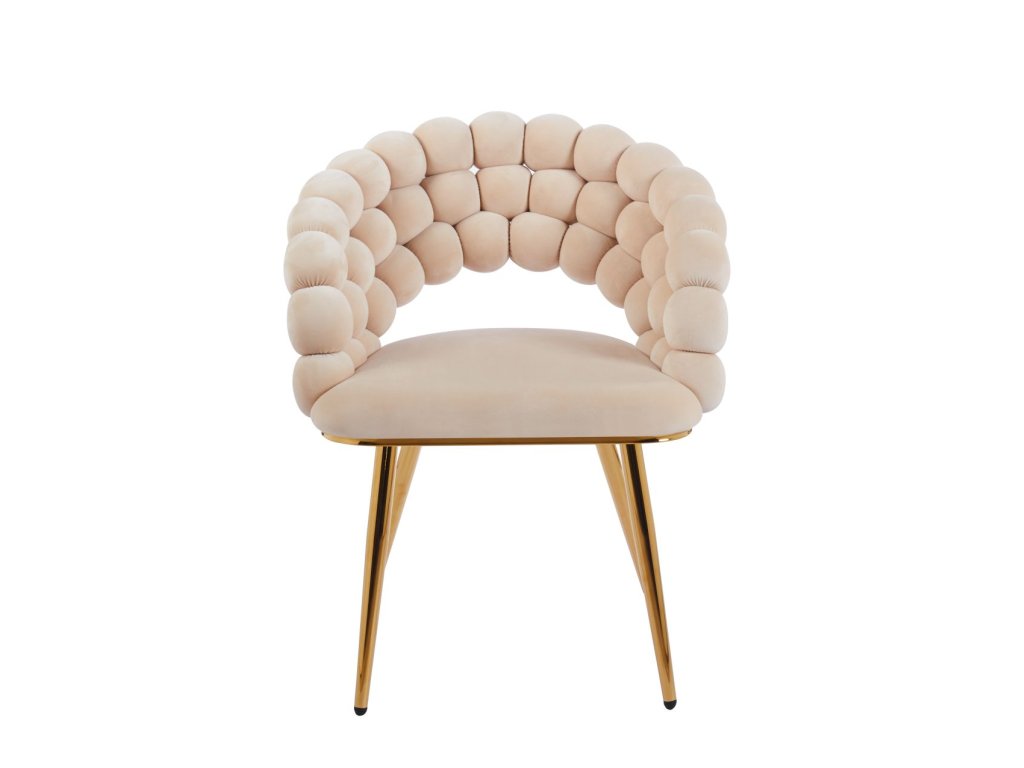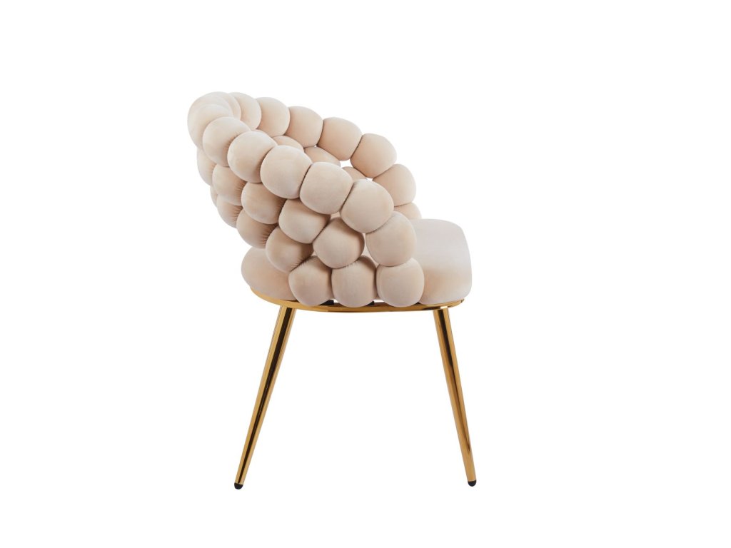 Az arany színű, stabil króm konstrukció biztosítja a szilárdságot és a tartósságot, ugyanakkor kiemeli a szék exkluzív jellegét. Az ülőfelület ergonomikus formája kényelmes ülést biztosít hosszabb használat során is, így a szék ideális nemcsak az étkezőbe, hanem a nappaliba, hálószobába, dolgozószobába vagy stílusos kozmetikai sarokba is.