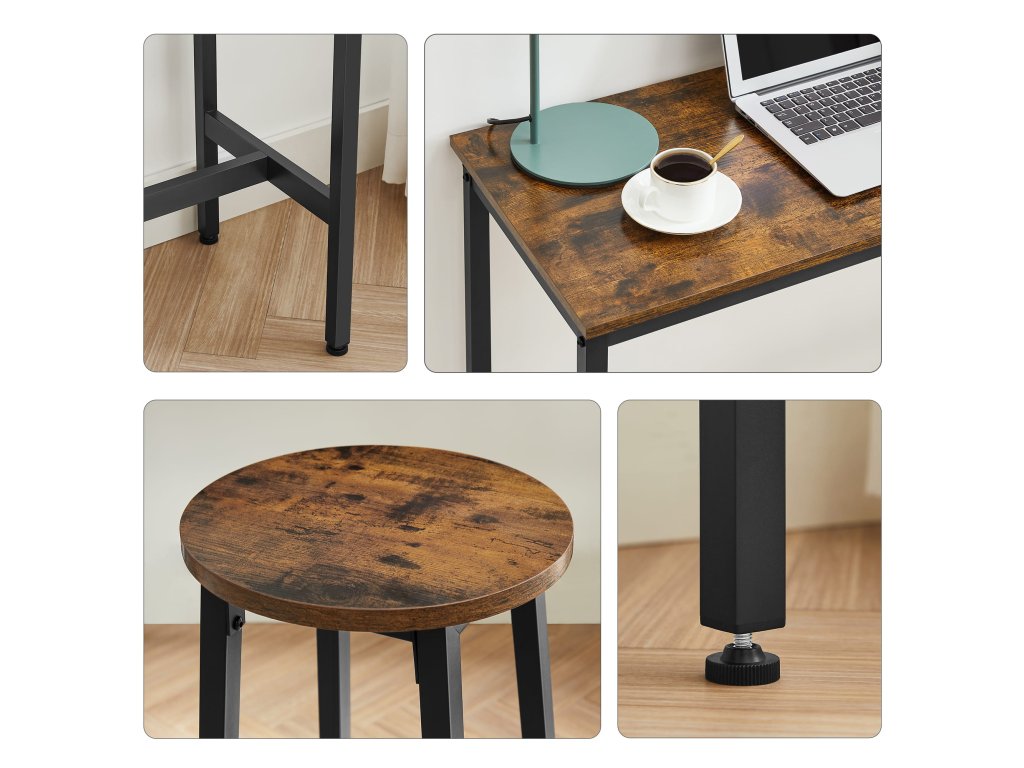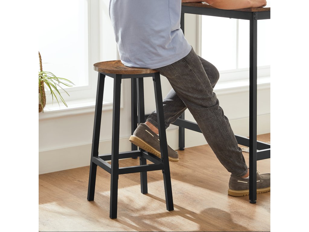 A rusztikus fa dekorációjú, stílusos bárgarnitúra ideális megoldás azok számára, akik a természetes megjelenés, a funkcionalitás és a helytakarékosság kombinációját keresik. A meleg, rusztikus fa dekoráció és a fekete fém szerkezet kombinációja modern ipari megjelenést kölcsönöz, amely tökéletes konyhába, étkezőbe, tetőtéri belső térbe vagy kisebb lakásokba.