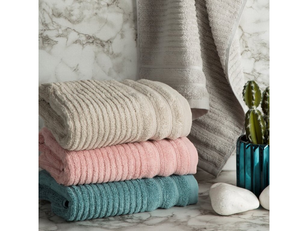 A törölközőt teljes hosszában csíkok díszítik. Ez a finom, mégis feltűnő minta eleganciát és textúrát kölcsönöz a törölközőnek, stílusos és modern megjelenést kölcsönözve neki.