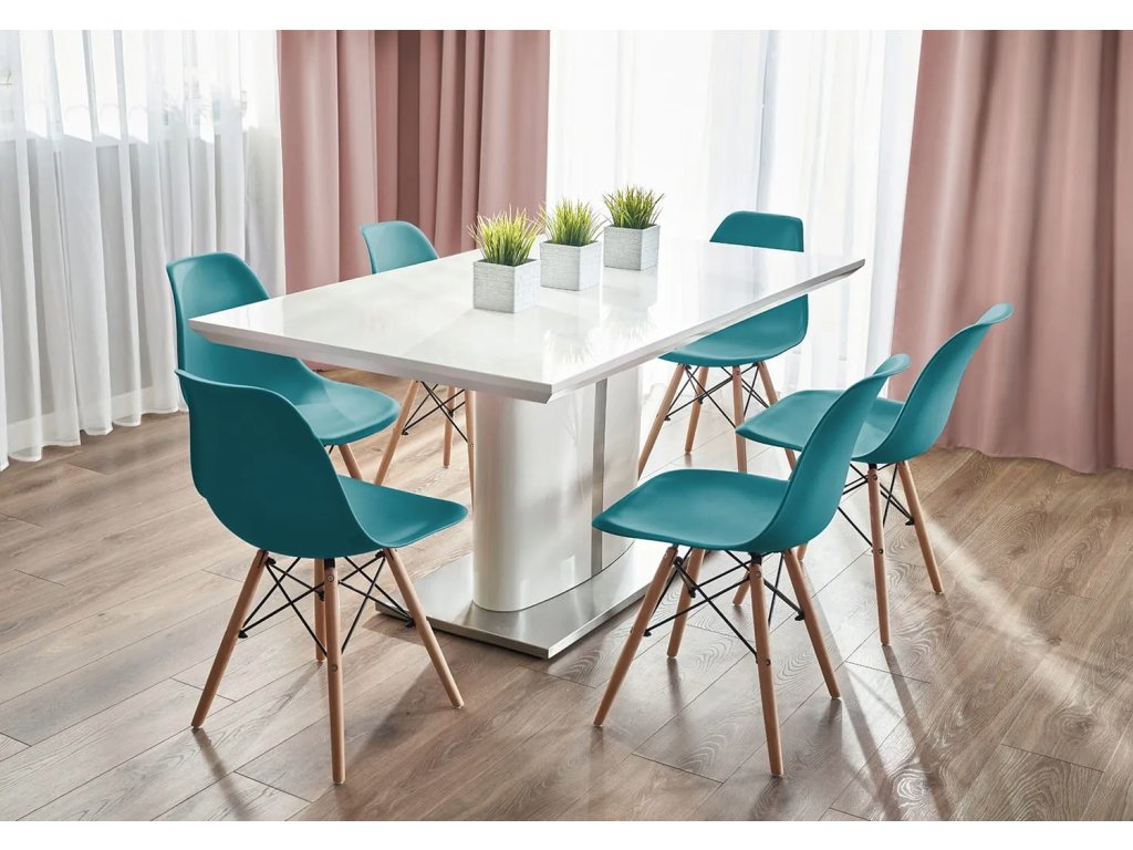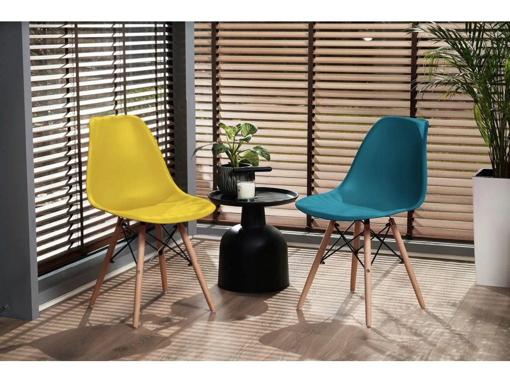 Az ergonomikus kialakítású, tartós polipropilénből készült ülőfelület kényelmes mindennapi használatra készült. A tömör bükkfából készült lábak stabilitást biztosítanak, természetes hatásúak és egyben masszívak is. Jellemző részlet a kontrasztos csatlakozóelemek, amelyek erősítik a szerkezetet és egyben dizájnkiegészítőként is szolgálnak.