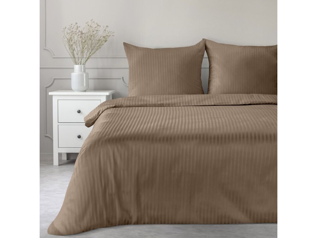 Szatén ágynemű VERA finom csíkokkal barna színben
