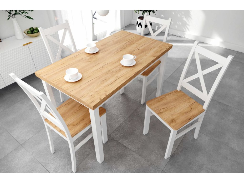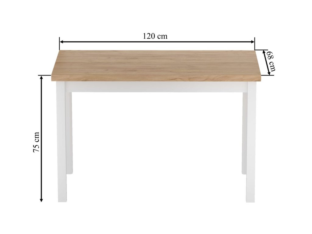 Téglalap alakú étkezőasztal 120 × 68 cm – Golden Oak Craft / Fehér lábak