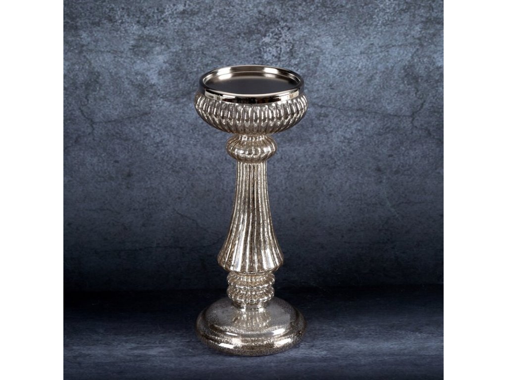 Üveg gyertyatartó 13B LED lámpákkal 11 x 25 cm pezsgő színben