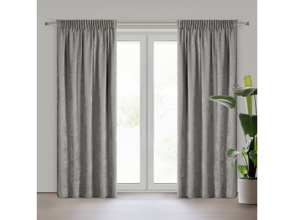 VANI dekoratív függöny, szürke színű, zsenília mintával, rakott szalaggal