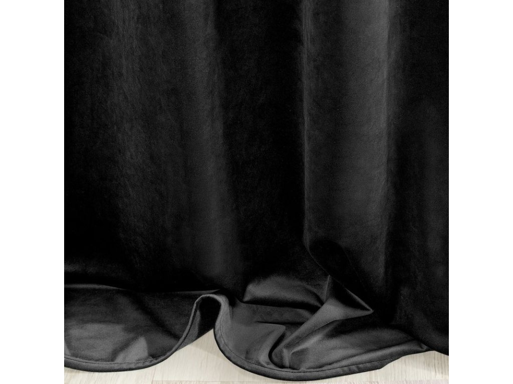 VILLA függöny exkluzív bársonyból 140 x 250 cm fekete színben - díszes kerekek