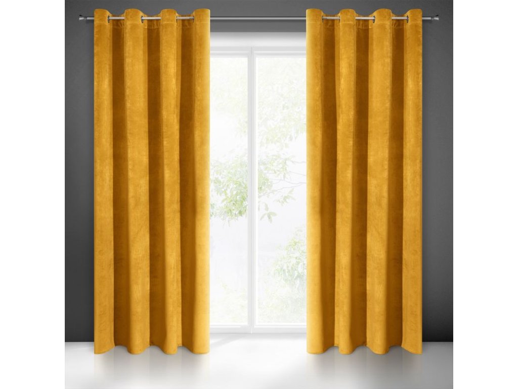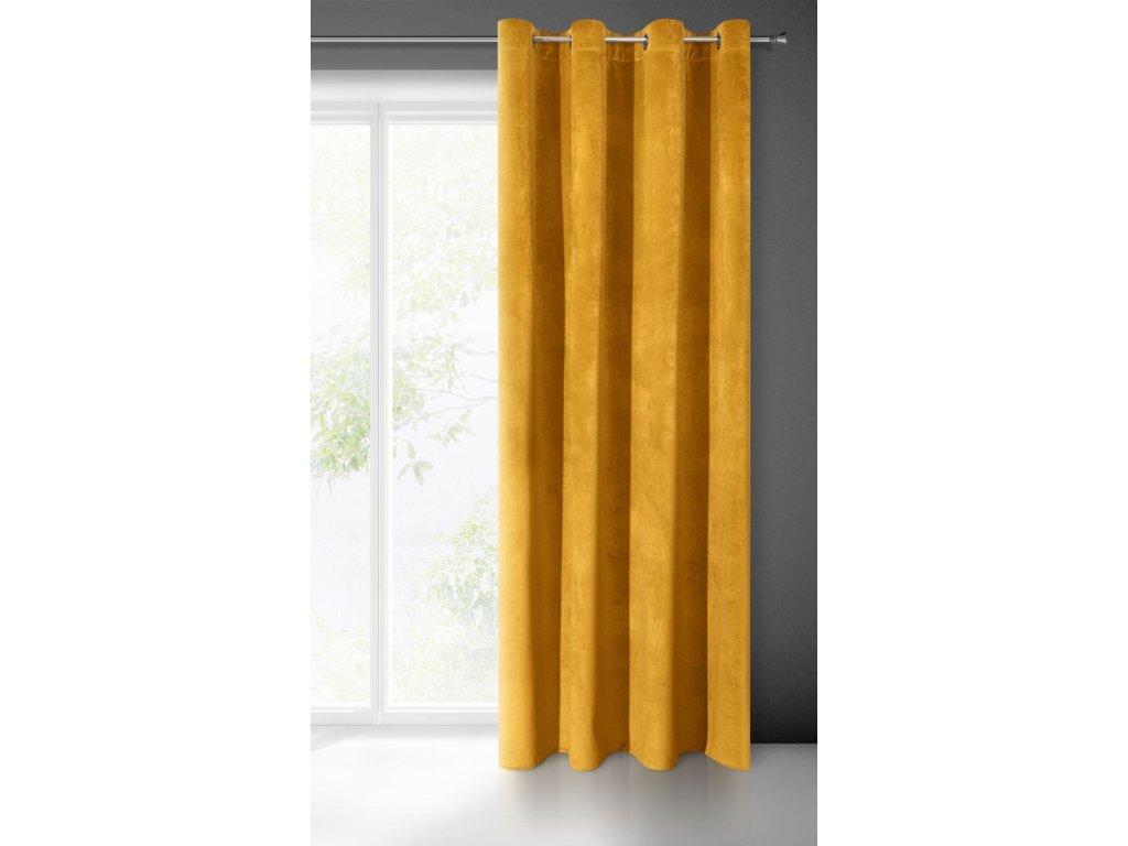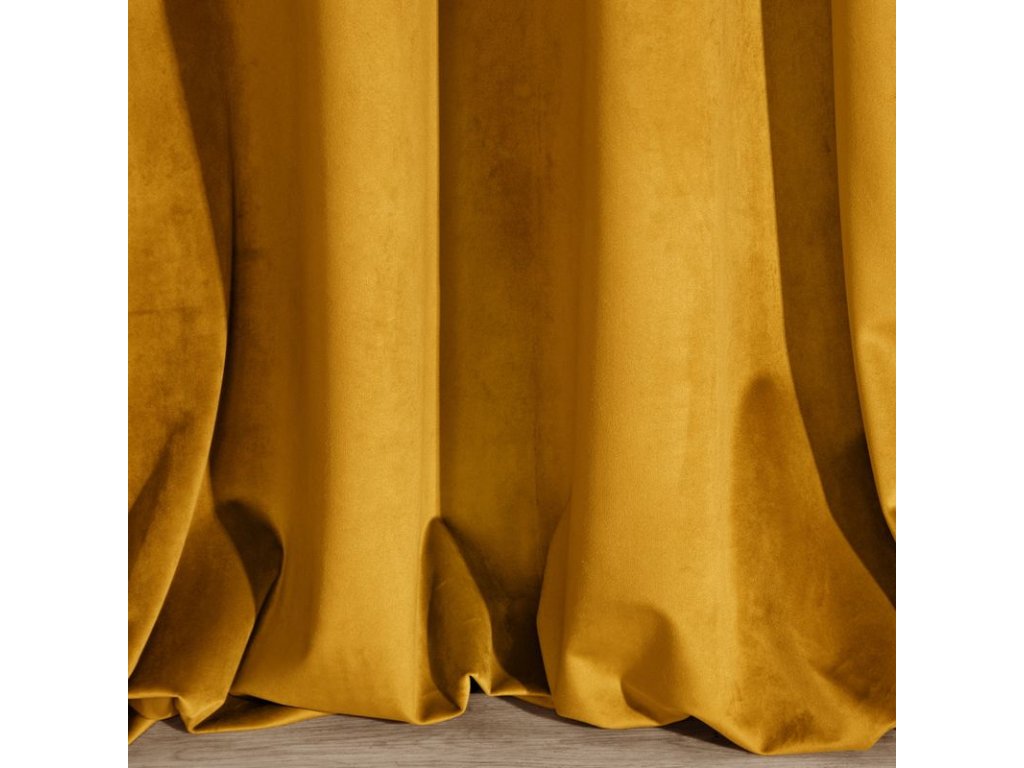 VILLA függöny exkluzív bársonyból 140 x 250 cm mustársárga színben - díszes kerekek