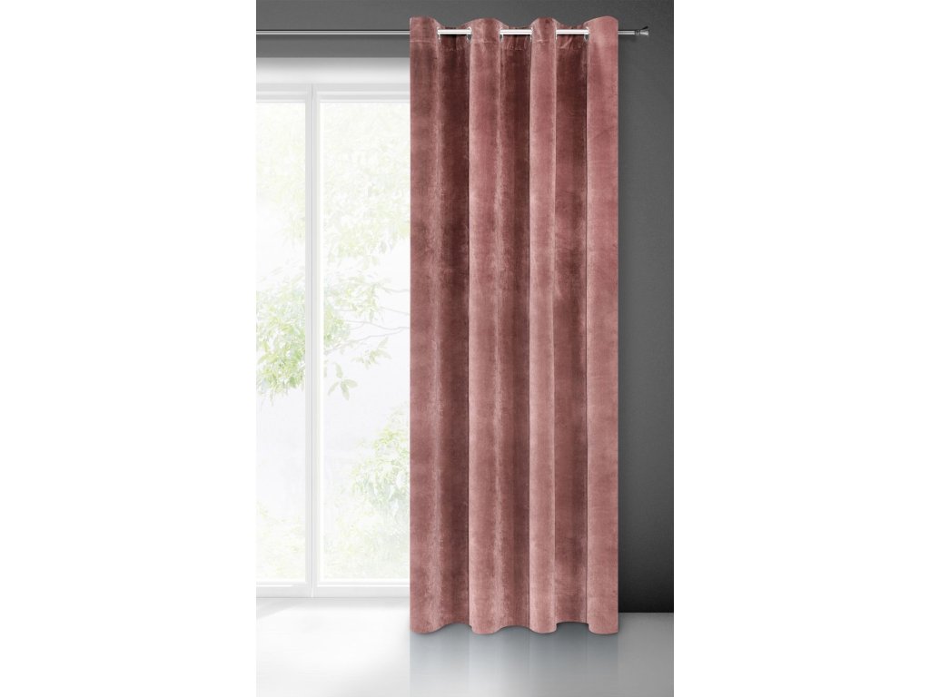 VILLA függöny exkluzív bársonyból 140 x 250 cm rózsaszínben - díszes kerekek