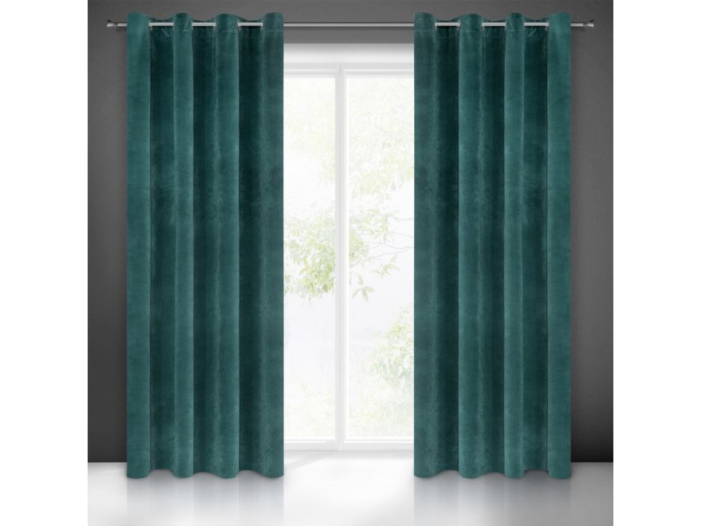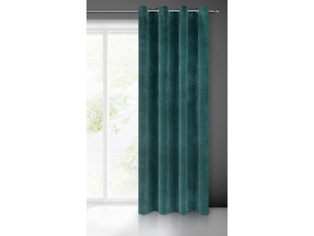 VILLA függöny exkluzív bársonyból 140 x 250 cm sötét türkiz színben - díszes kerekek