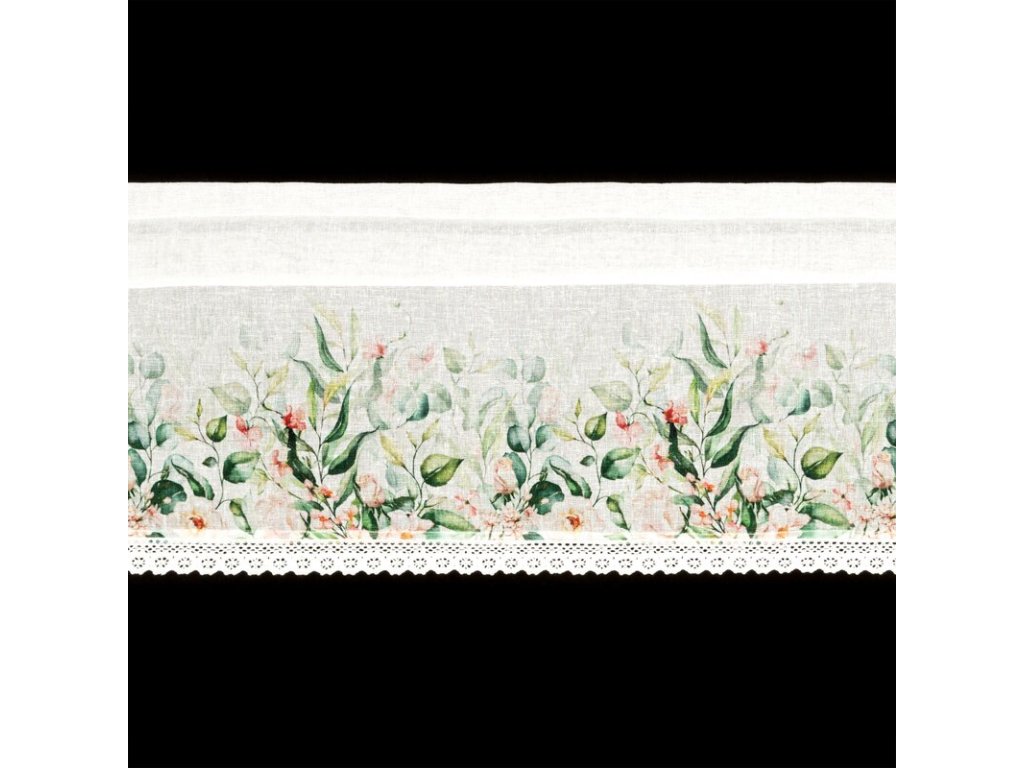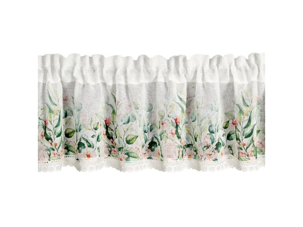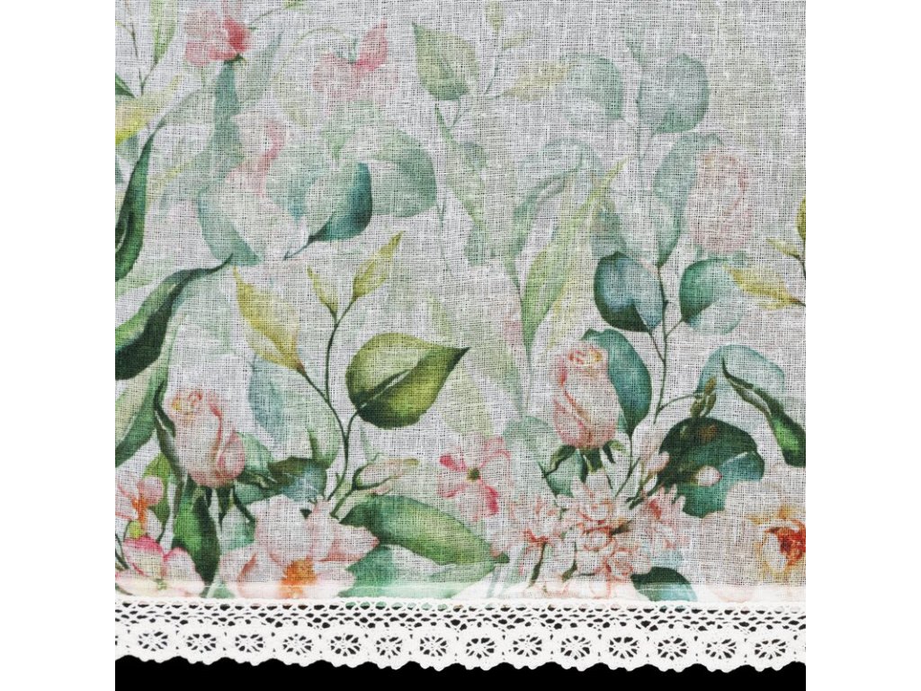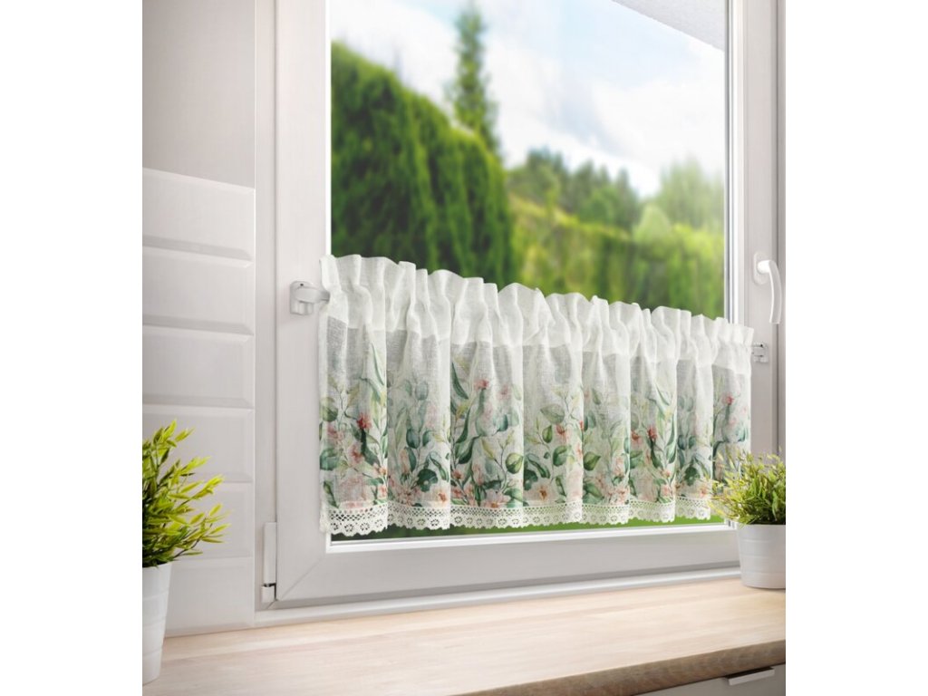 Virágmintával és csipkével díszített ESTERA konyhafüggöny 150 x 60 cm