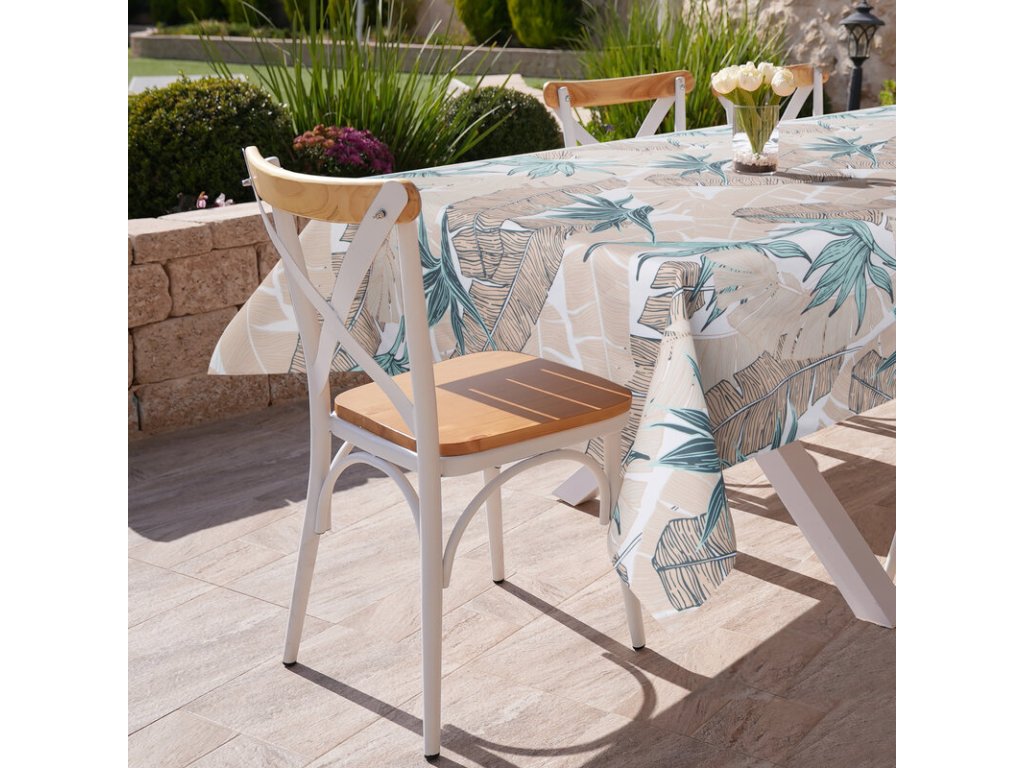 Vízálló tulajdonságainak köszönhetően az abrosz nedvességálló és könnyen tisztítható, így kiváló választás teraszra, erkélyre vagy kertbe.